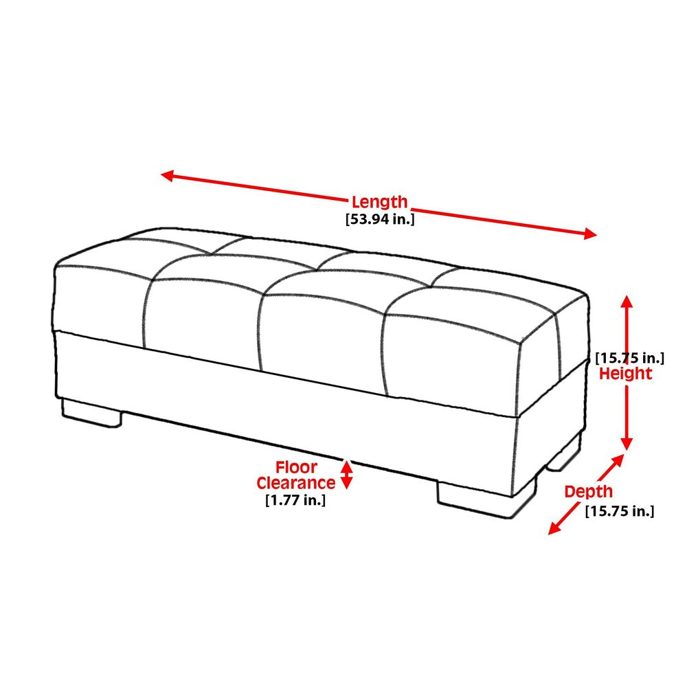 Add a good-looking decorative accent to your space that is also practical for seating. Designed to discretely add hidden storage to your room without sacrificing seating or footrest space. Expertly upholstered with padding in a soft solid color chenille and faux leather, this ottoman is as comfortable as it is good looking. Easy to blend into most any room, an ottoman is a way to add a good-looking accent to your space that can also be practical and useful. 15.8-inch h x 53.9-inch w x 15.8-inch d.