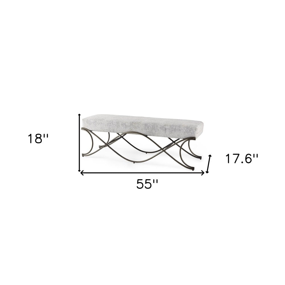 55" Dark Gray and Nickel Chenille and Metal Upholstered Bench