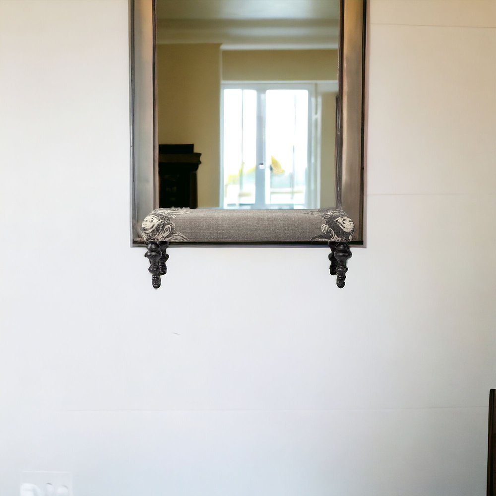 Practicality and fashion mix together with this handy 55-inch gray and black upholstered cotton blend floral distressed bench. The gray upholstery top of this bench is a nice contrast to the high quality, black manufactured wood of the base. Complete with a purposefully distressed finish, this bench has an aged, vintage, and rustic feel. Expertly upholstered with padding and soft cotton blend in a floral pattern, this bench is as comfortable as it is good looking. Ideal for entrance foyer, hallway, or laundry room. This bench is a great place store your keys, put on your shoes, or be a catchall on your way in or out. Benches don't have to be unsightly. Increase your seating and the fashion quotient of your room all at the same time with this hard wearing, versatile, and good looking bench. 18-inch H x 55-inch W x 14-inch D