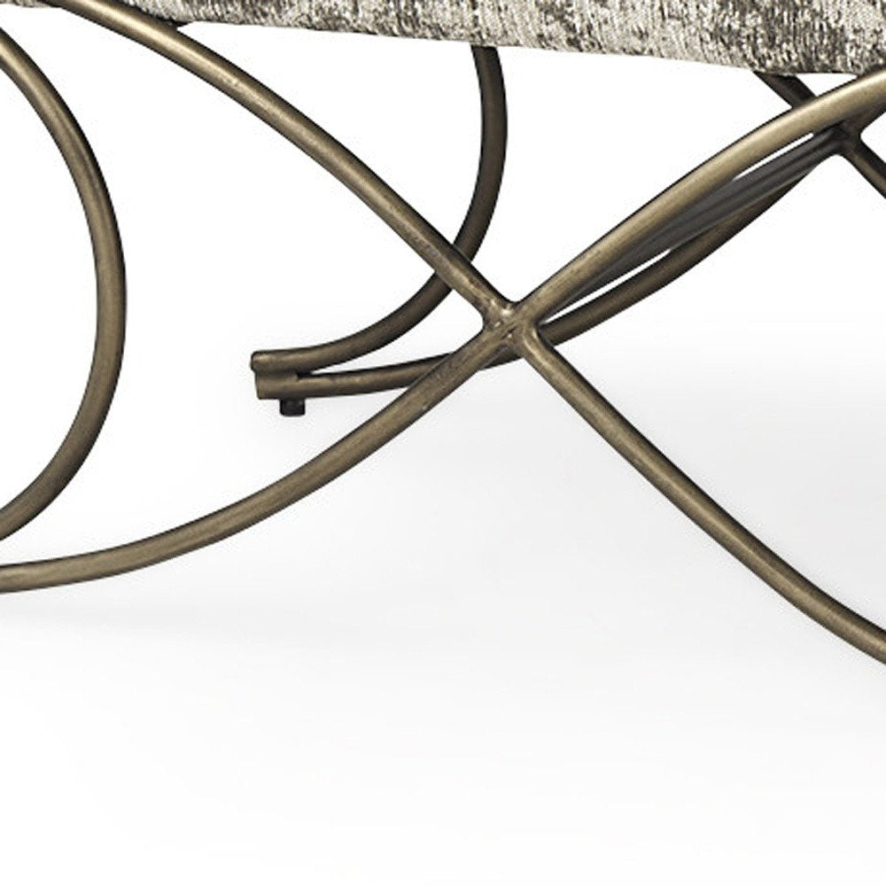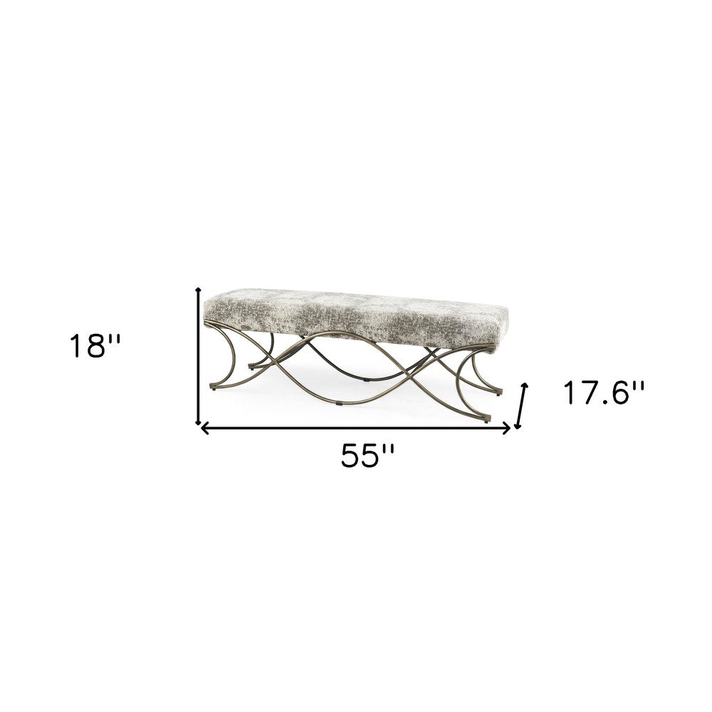 55" Gray and Gold Chenille and Metal Upholstered Bench