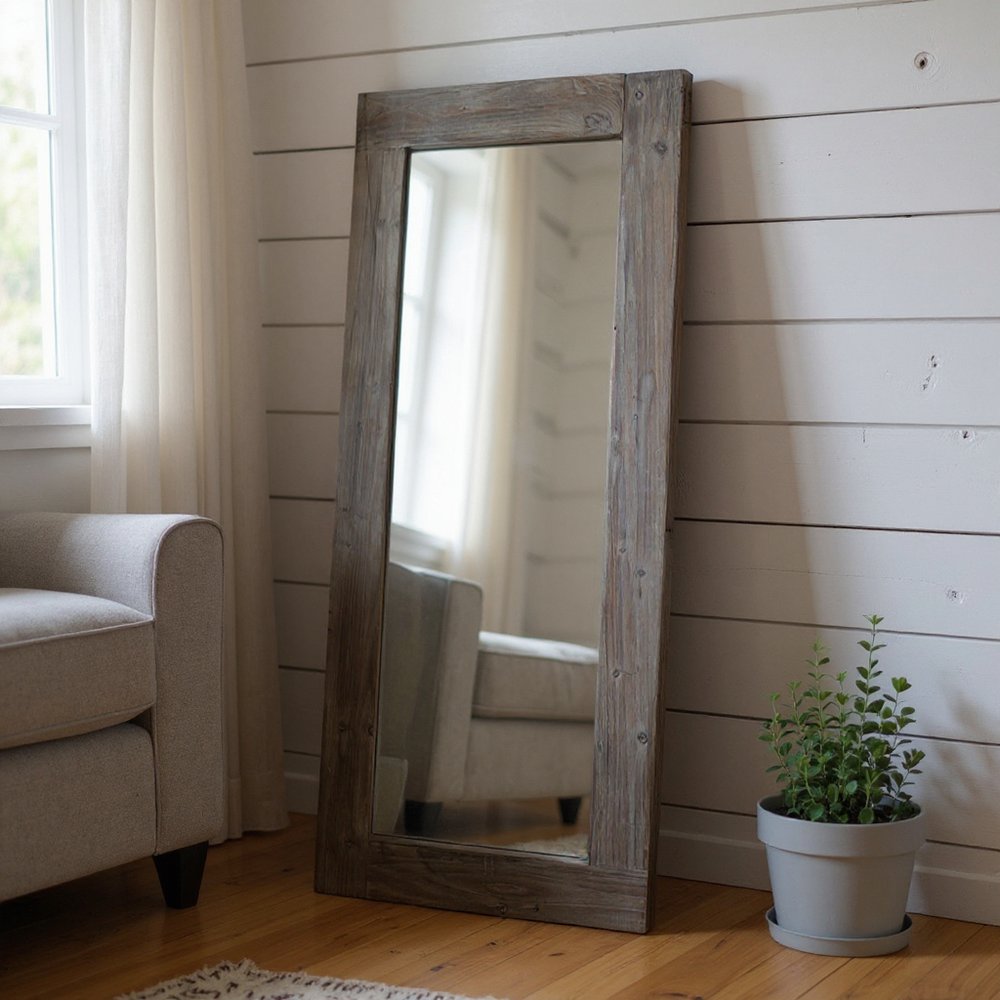 Espejo de pared de madera maciza marrón oscuro de 58" con acento independiente