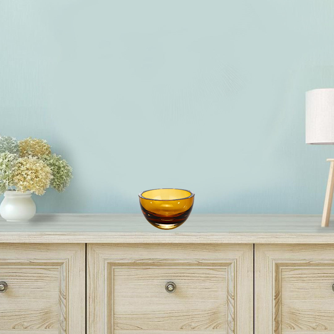 Cuenco de cristal soplado a boca de color ámbar de 6" con paredes gruesas