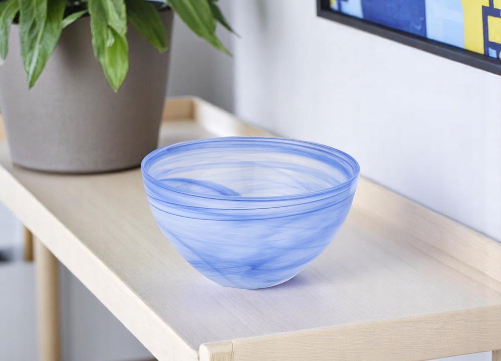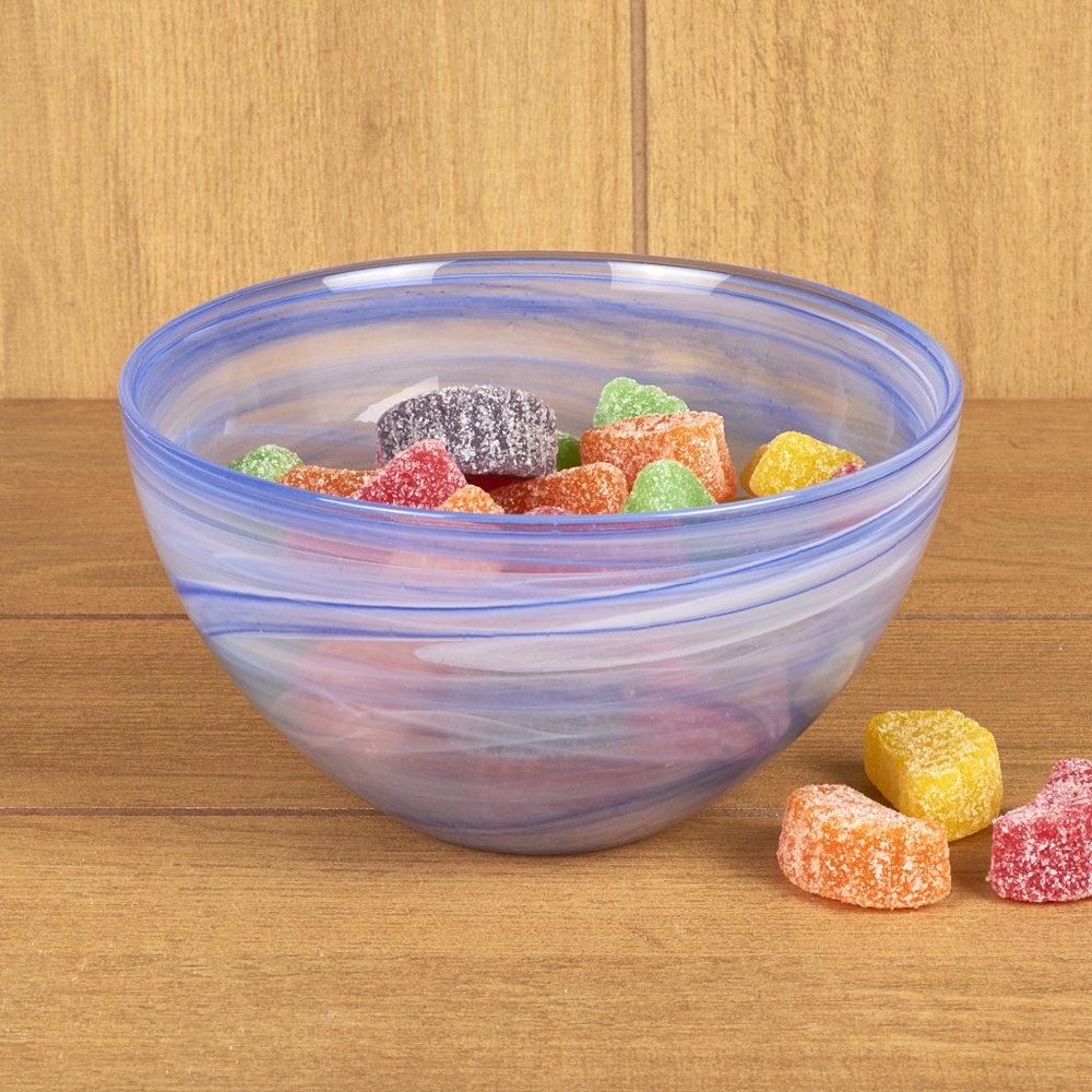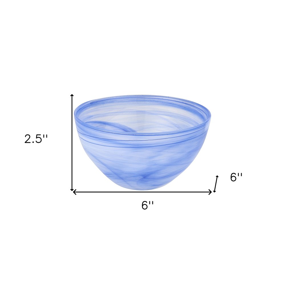 Tazón redondo de vidrio de alabastro azul y blanco de 6" para dulces o frutos secos
