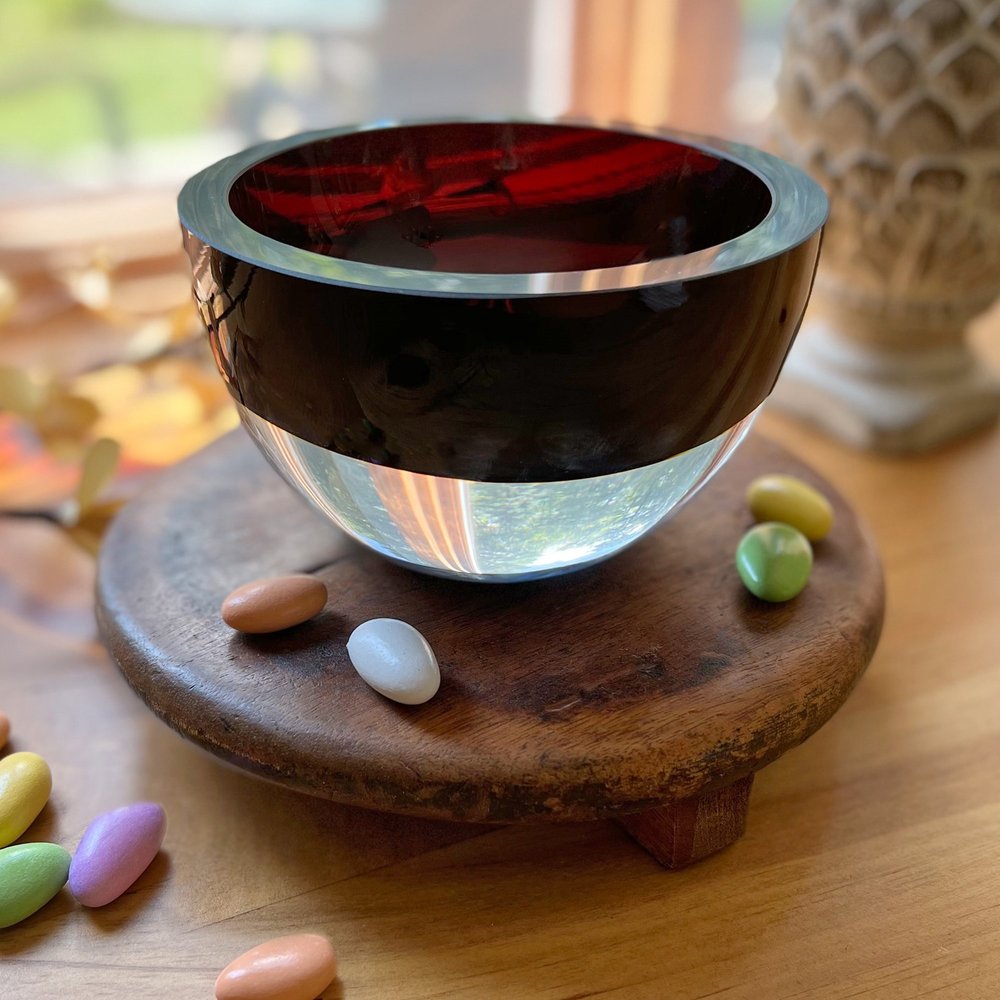 Pesado y de una calidad superior evidente, este tazón de 15 cm de cristal europeo de paredes gruesas es una forma espectacular de servir dulces, frutos secos o mentas. Lleno o no, esta pieza es igual de impresionante por sí sola. Aporta un toque moderno a tu espacio. Una obra de arte en sí misma, este tazón grueso y colorido es único y rezuma influencia del diseño europeo moderno. 10 cm de alto x 15 cm de ancho x 15 cm de profundidad.