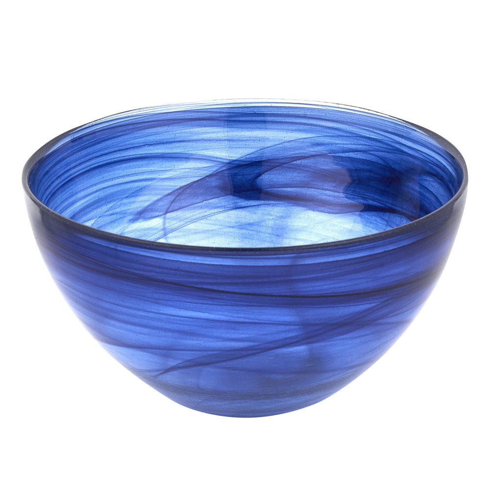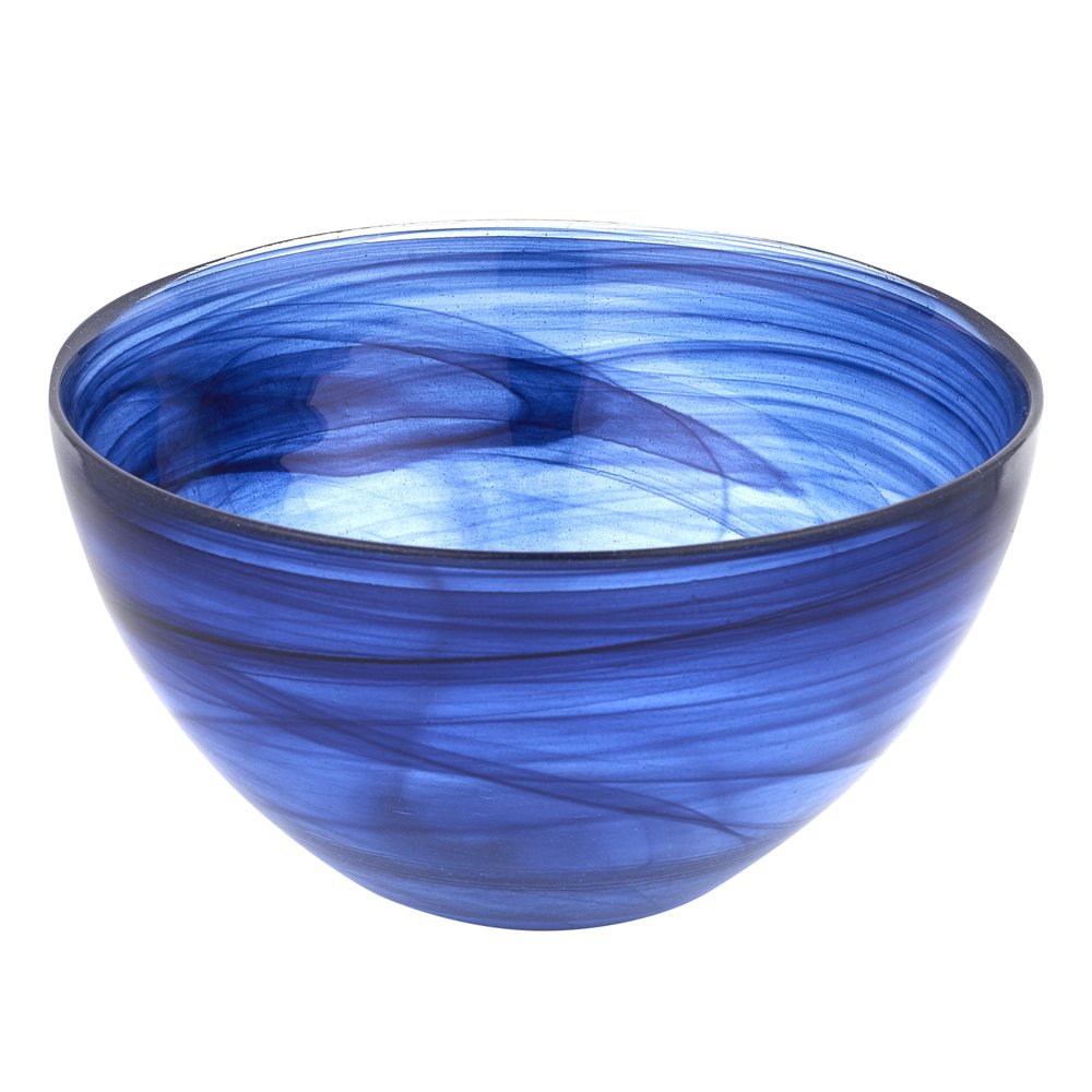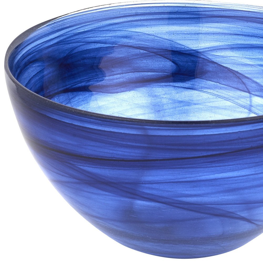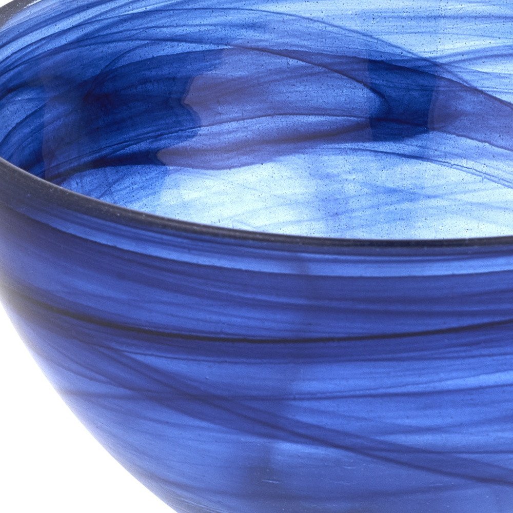 Cuenco redondo de 15 cm de vidrio alabastro blanco y cobalto para dulces o frutos secos