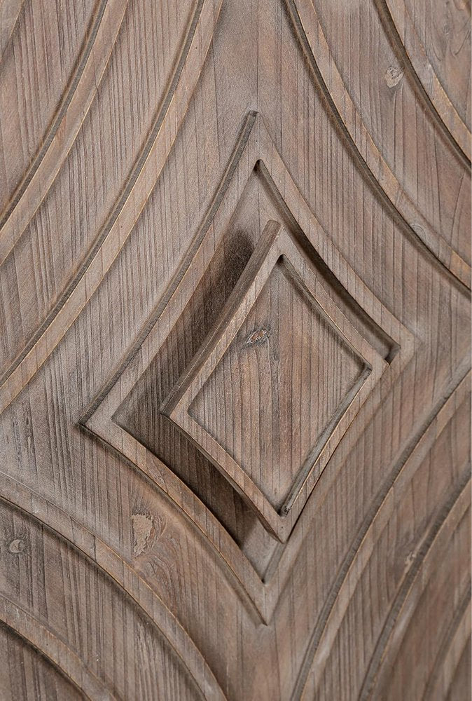 Storage vessels don't have to be unsightly. Increase your storage space and the fashion quotient of your room with this hardwearing and versatile sideboard. Crafted from a mix of solid and manufactured wood with distressing, this mid-century style sideboard features a beautiful carved geometric pattern. The charming charcoal gray and brown color scheme adds warmth to any space. This multi-functional practical piece of furniture seamlessly blends functionality with aesthetic appeal. 32.28-inch H x 60-inch W x 15.6-inch D