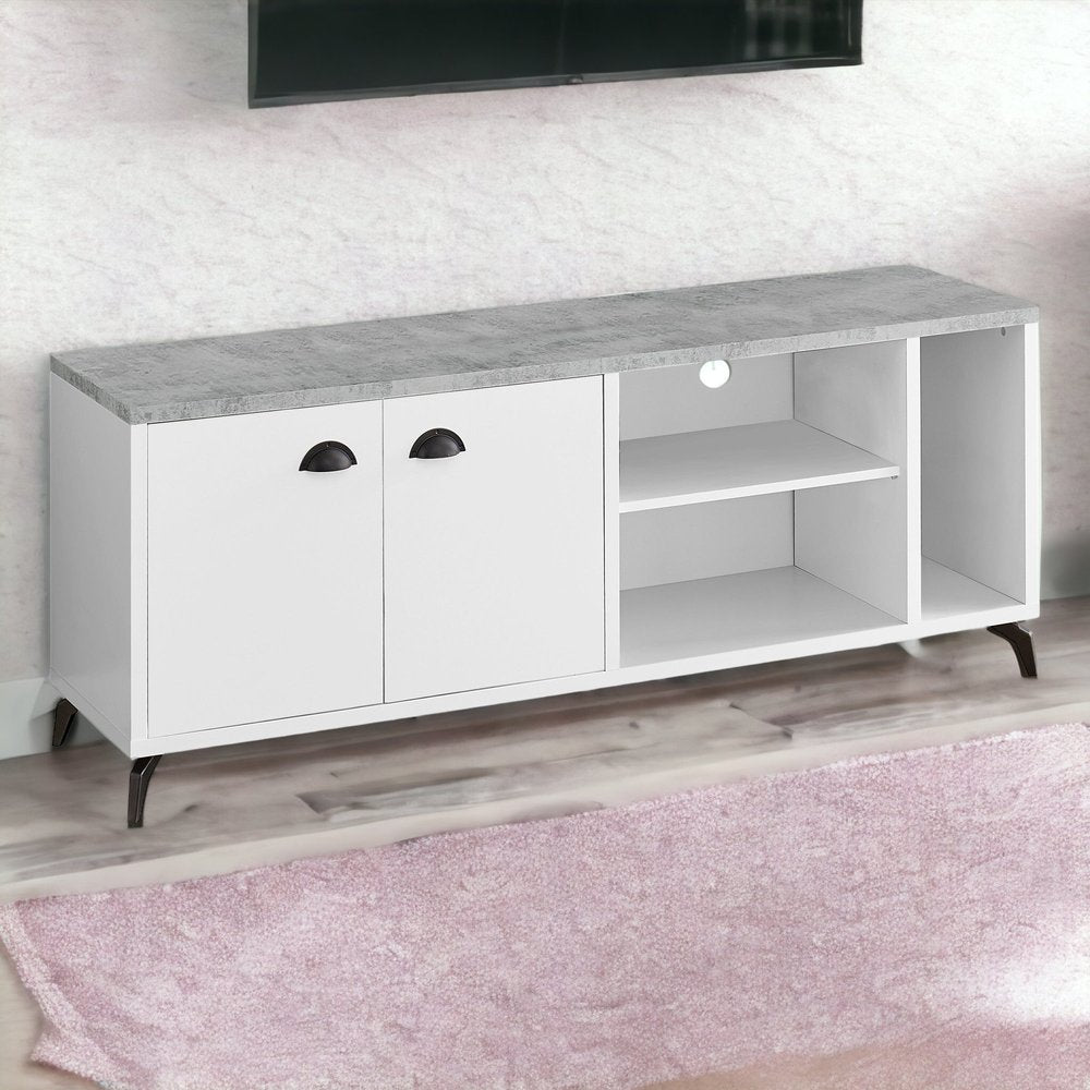 Make a true home theater of your room with this captivating 60-inch white cabinet enclosed storage tv stand. To add to the versatility, this piece features open non-concealed storage that can be used for not only storage but display as well. Ideal for tv placement and storage in your living room, bedroom or office. 23.75-inch H x 60-inch W x 15.5-inch D