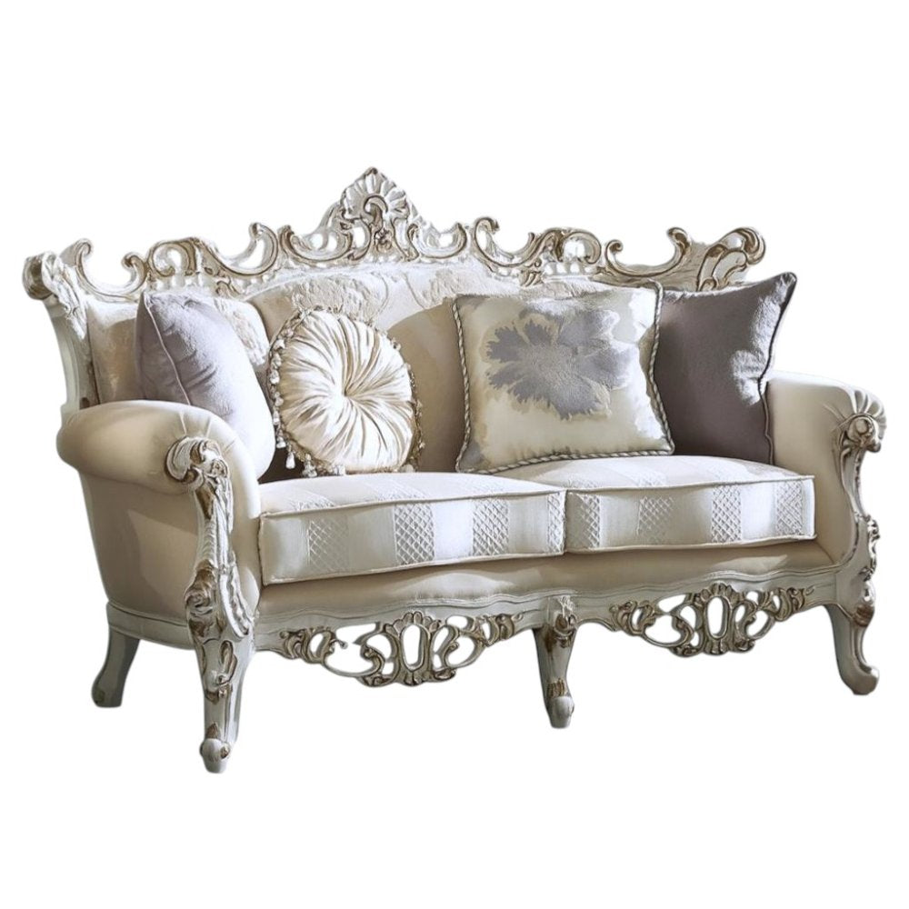 Loveseat Chesterfield de 61" en damasco marfil y plateado
