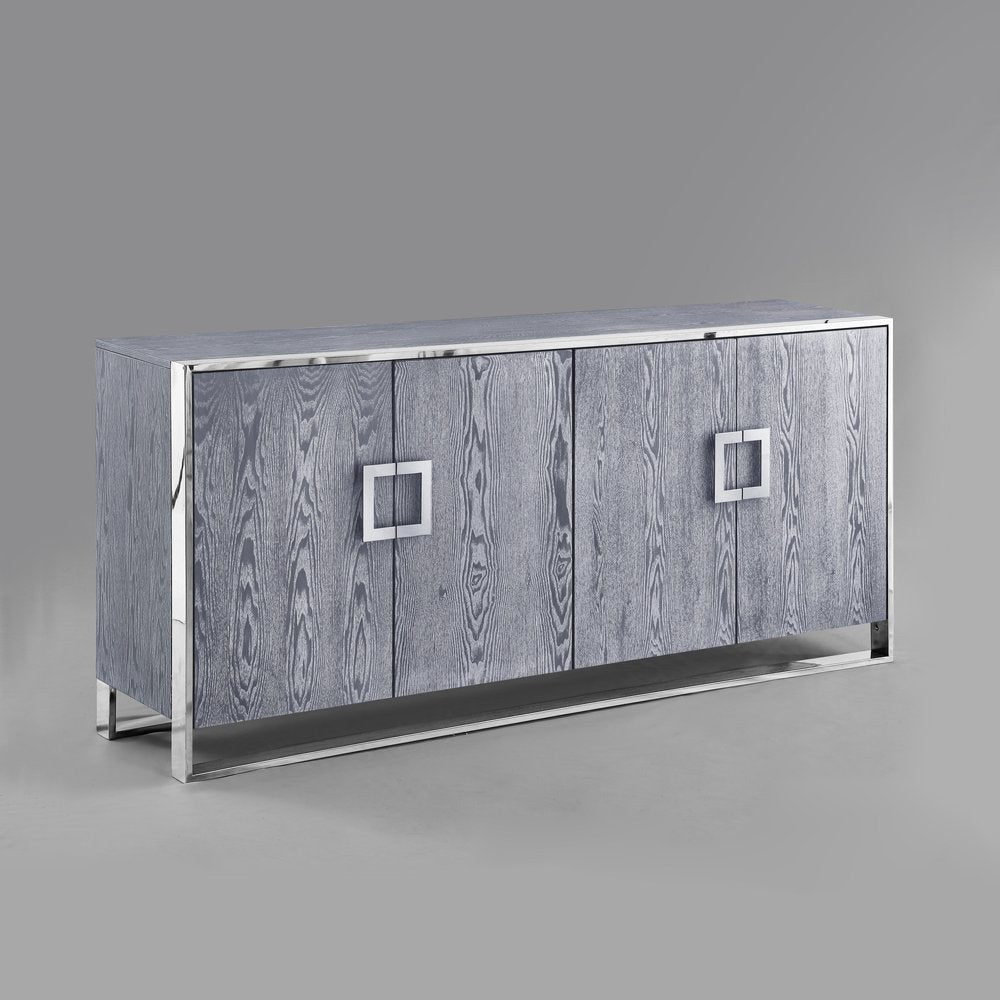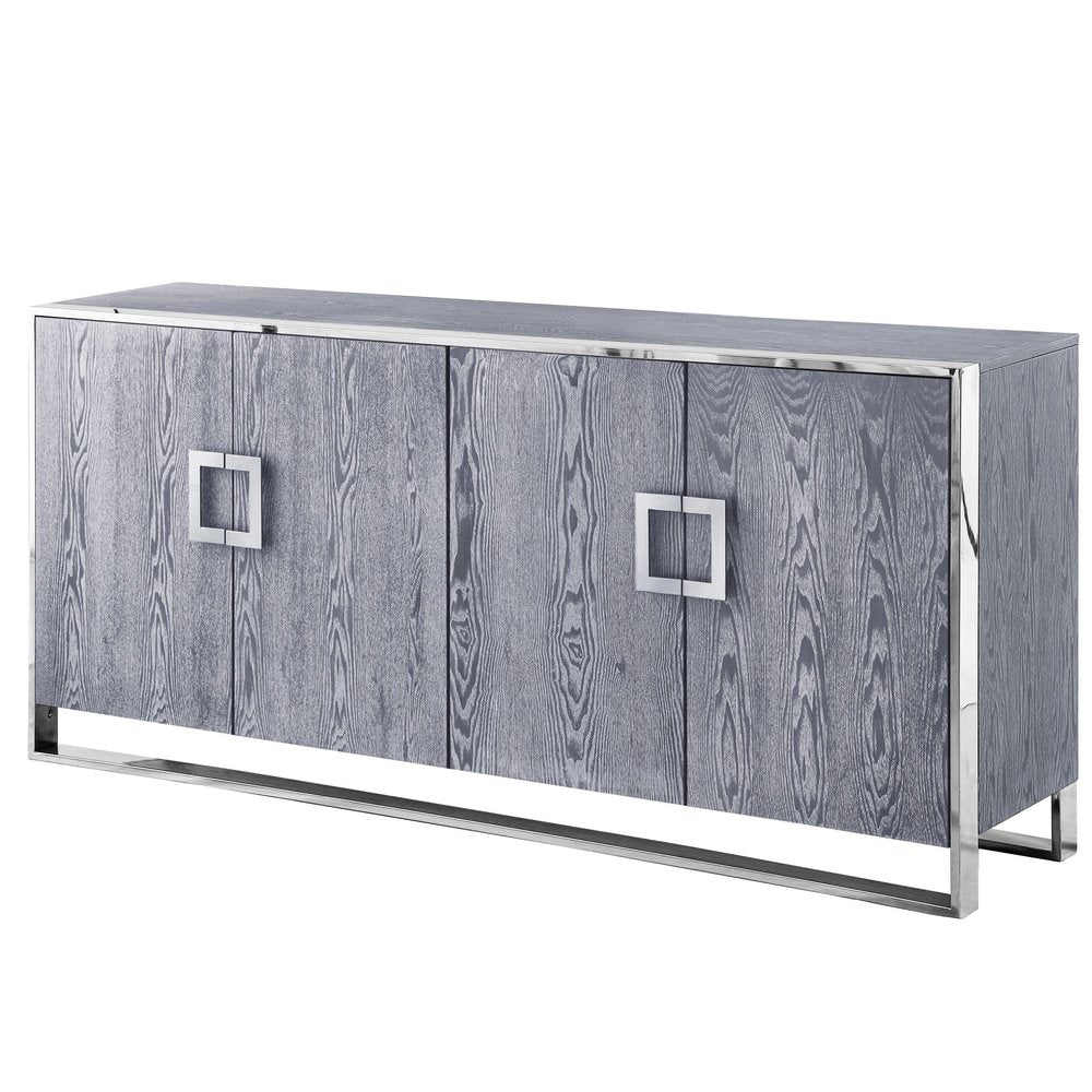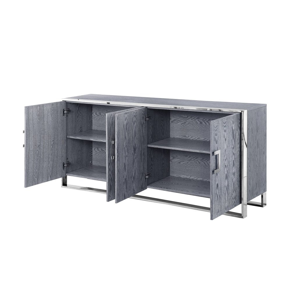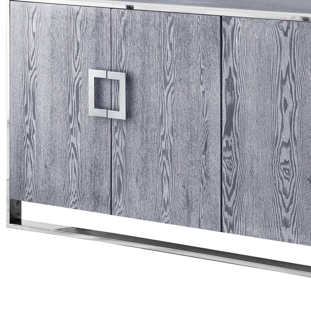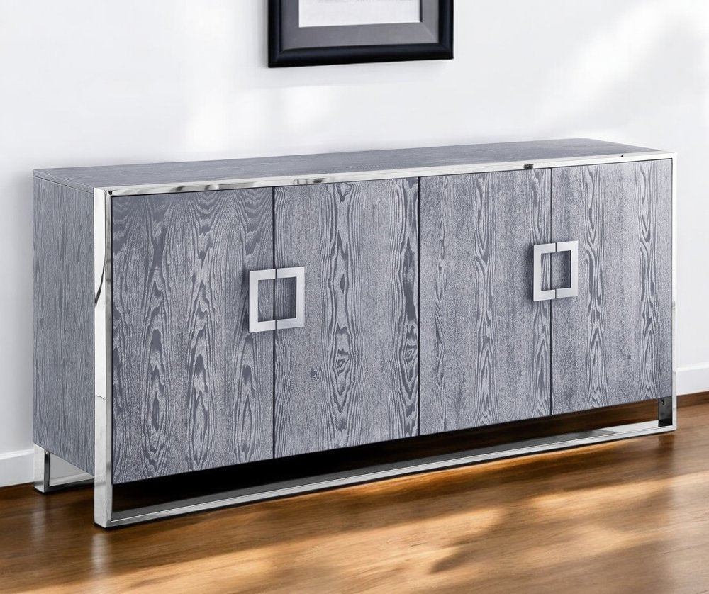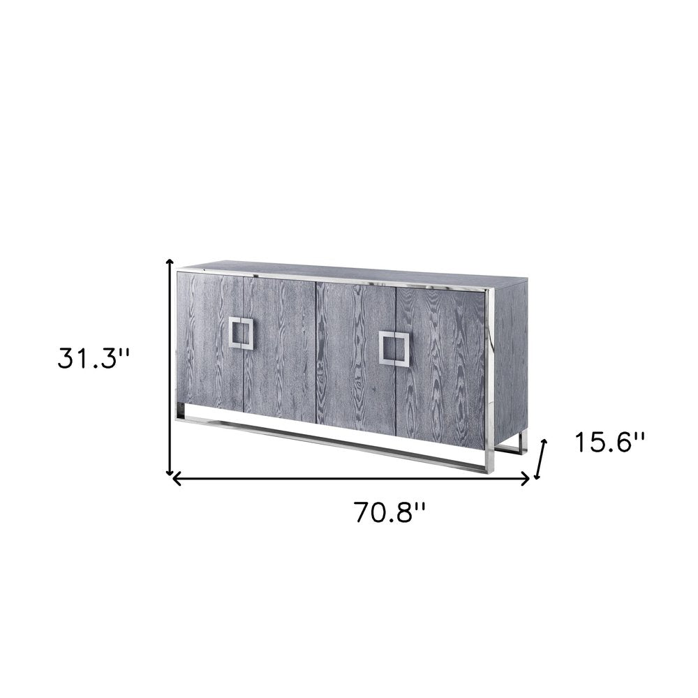 71" Ash Gray And Chrome Sideboard with Four Doors