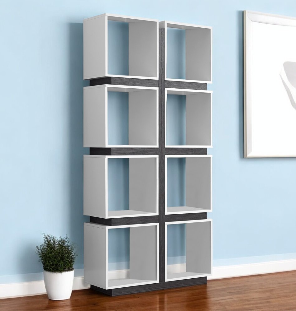 Librería cúbica de ocho niveles de madera blanca de 71"