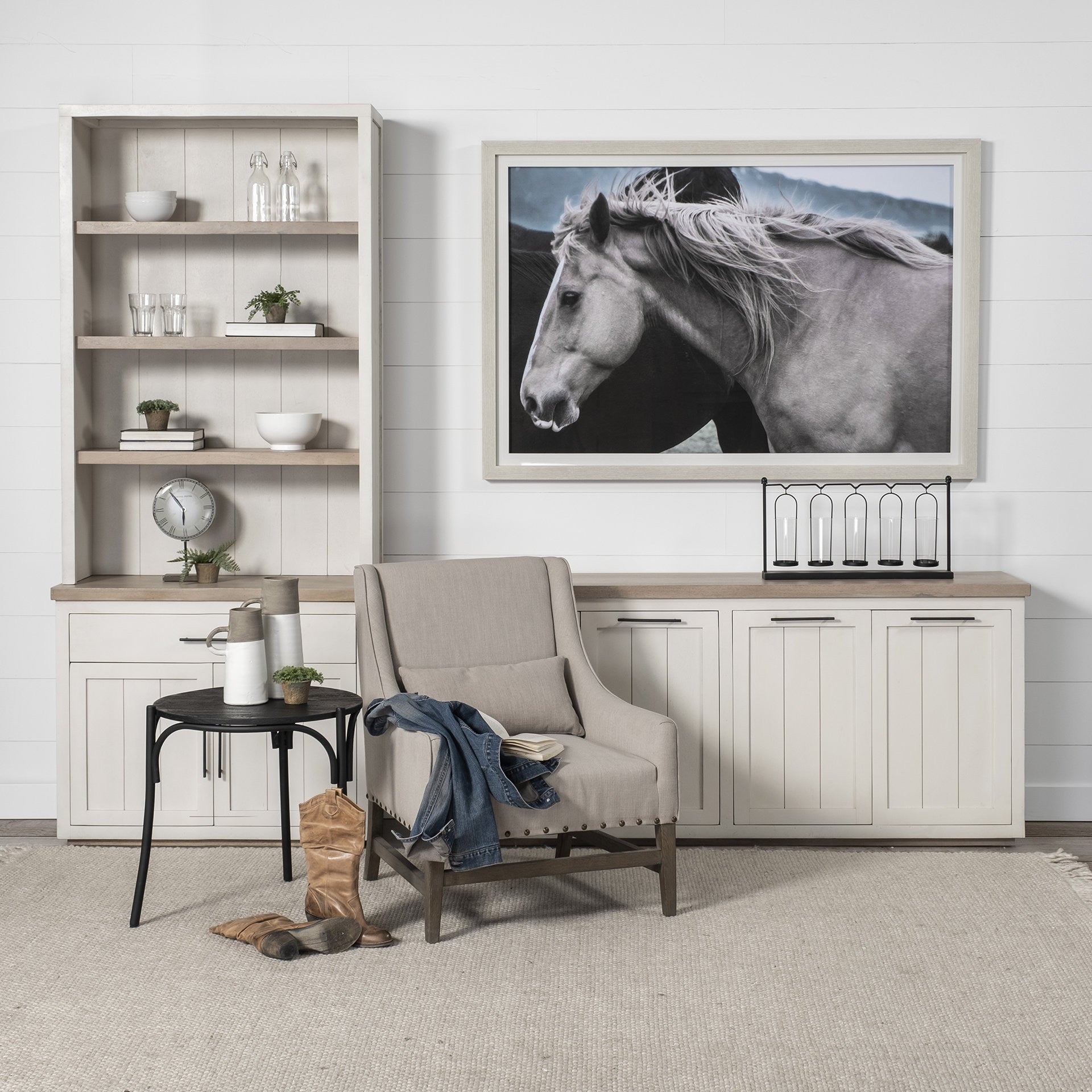 Storage vessels don't have to be unsightly. Increase your storage space and the fashion quotient of your room with this hard-wearing, versatile, and good-looking solid wood sideboard. Featuring shelves and doors in a charming brown and white cottage style, this piece adds both functionality and elegance to your living space. The solid wood construction ensures durability and longevity, making it a timeless addition to your home decor. Perfect for displaying your favorite decor items or serving as a stylish storage solution, this sideboard seamlessly combines practicality with aesthetic appeal. 32-inch H x 73-inch W x 17-inch D