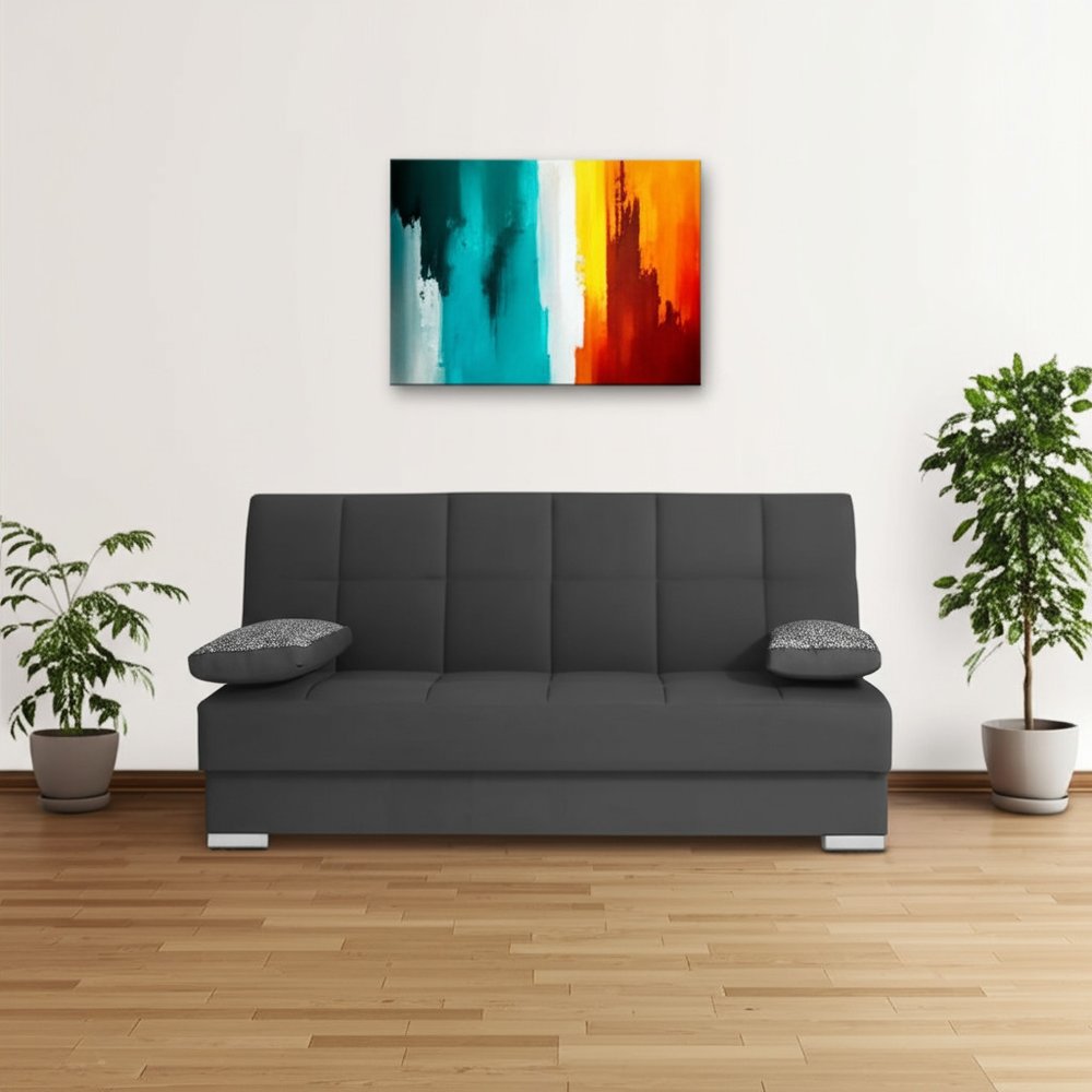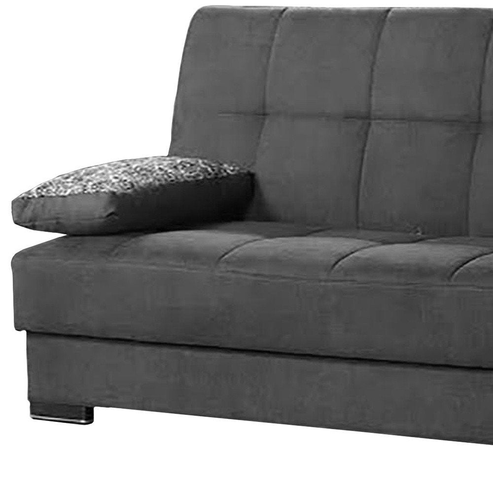 Add an air of fashion to your space with this fabulous 75-inch gray chenille convertible futon sleeper sofa and toss pillows with storage. With a warm and rich look to it, this solid color convertible futon is upholstered in chenille that is designed to be super soft to the touch, sturdy and resilient. Solid colors give you lots of decorative options and are easy to work into your decor scheme. Sinuous springs construction gives this piece strong support and makes it comfortable to sit even for long periods of time. Fixed arms offer a comfy place to rest. A great showpiece for your room, this sofa is a must have. 37.8-inch h x 74.8-inch w x 42.1-inch d.