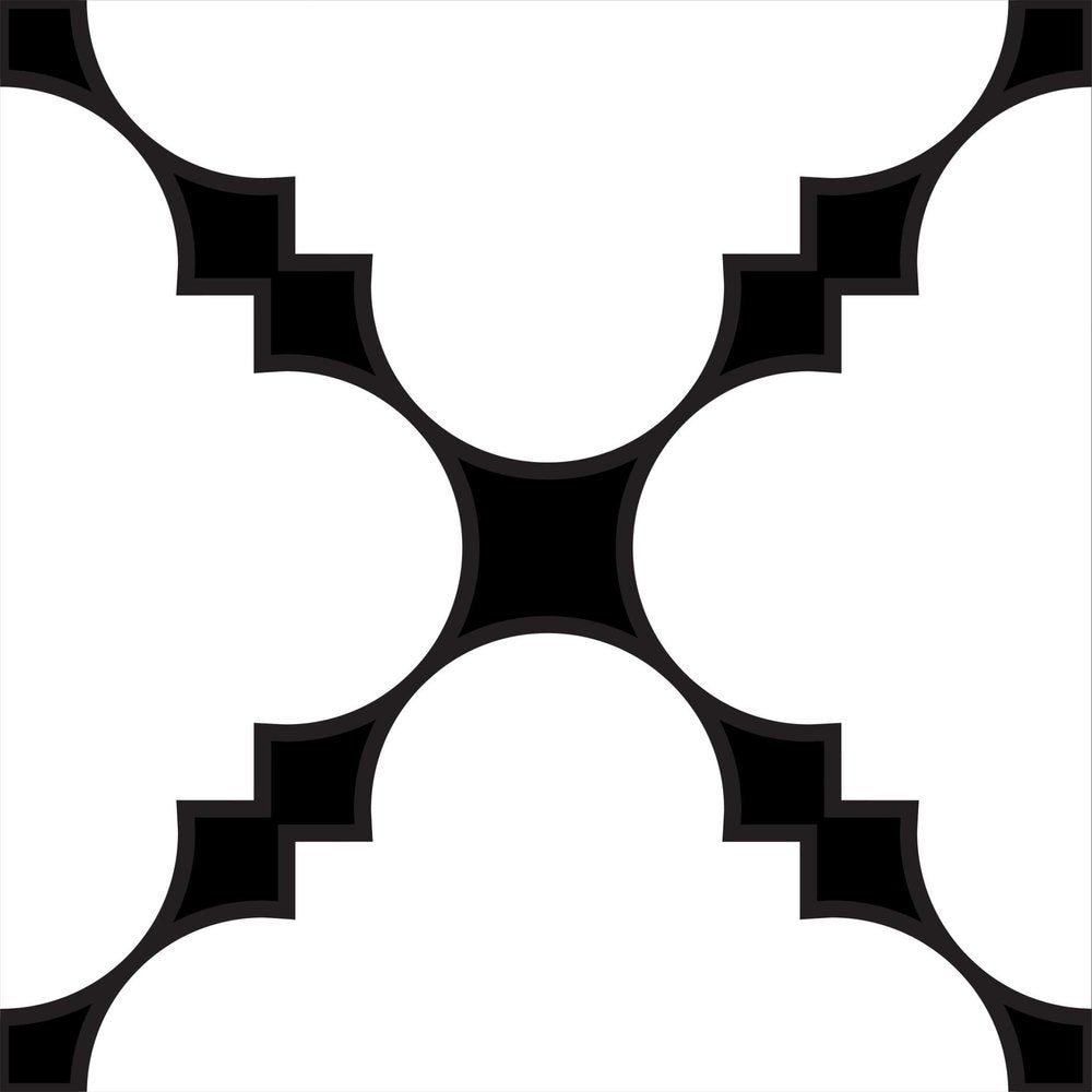 The possibilities are endless with these 8" x 8" Black and White Tri Peel and Stick Removable Tile stickers. These fabulous peel and stick tiles will add lots of color, sophisticated flair, and fun design to your kitchen backsplash, fireplace mantel, stair treads, half wall, bathroom or nook. These 8" square tile stickers in multiple bright fun colors and designs are an easy, no mess solution to complete a personalized and colorful room makeover. Easy to apply on any clean dry flat surface, and easy to remove. Multi use and multi-room appeal make this design option is perfect for renters, landlords, college students and homeowners alike. Peel and stick tile decals make it easy to turn your space into a home. Removable without damage to surfaces. One kit contains 24 stickers. Single Tile Design.