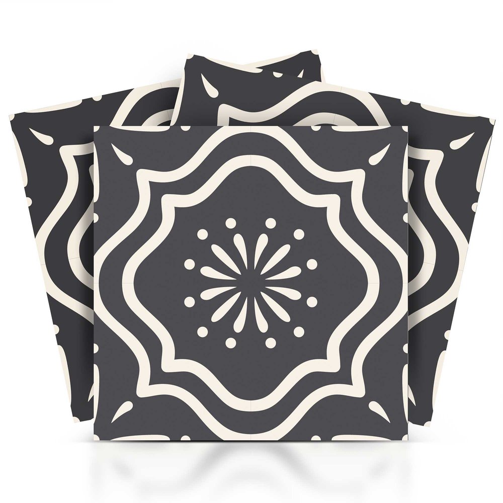The possibilities are endless with these 8" x 8" Burst Gray and White Peel and Stick Removable Tile stickers. These fabulous peel and stick tiles will add lots of color, sophisticated flair, and fun design to your kitchen backsplash, fireplace mantel, stair treads, half wall, bathroom or nook. These 8" square tile stickers in multiple bright fun colors and designs are an easy, no mess solution to complete a personalized and colorful room makeover. Easy to apply on any clean dry flat surface, and easy to remove. Multi use and multi-room appeal make this design option is perfect for renters, landlords, college students and homeowners alike. Peel and stick tile decals make it easy to turn your space into a home. Removable without damage to surfaces. One kit contains 24 stickers. Kit includes a single style tile design.
