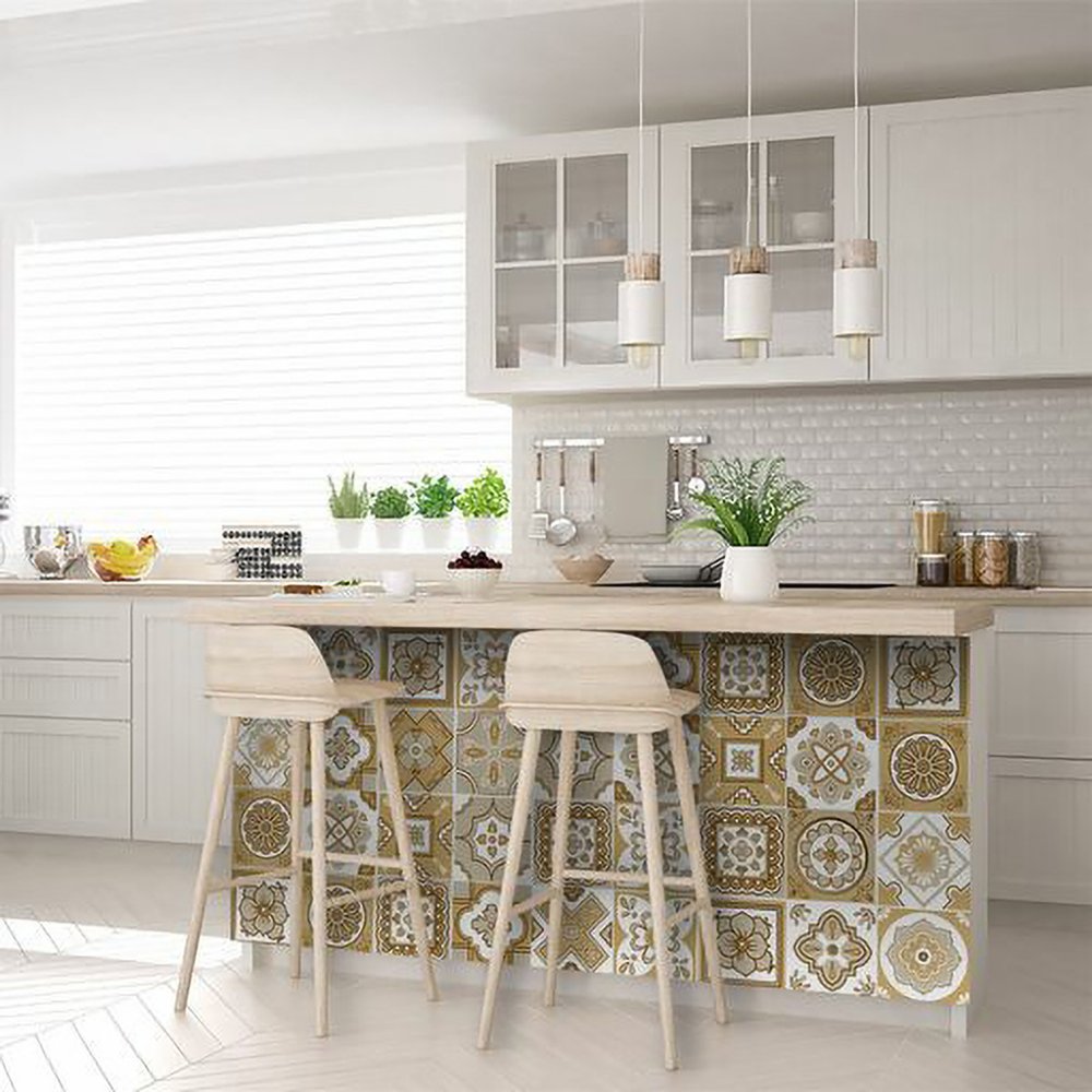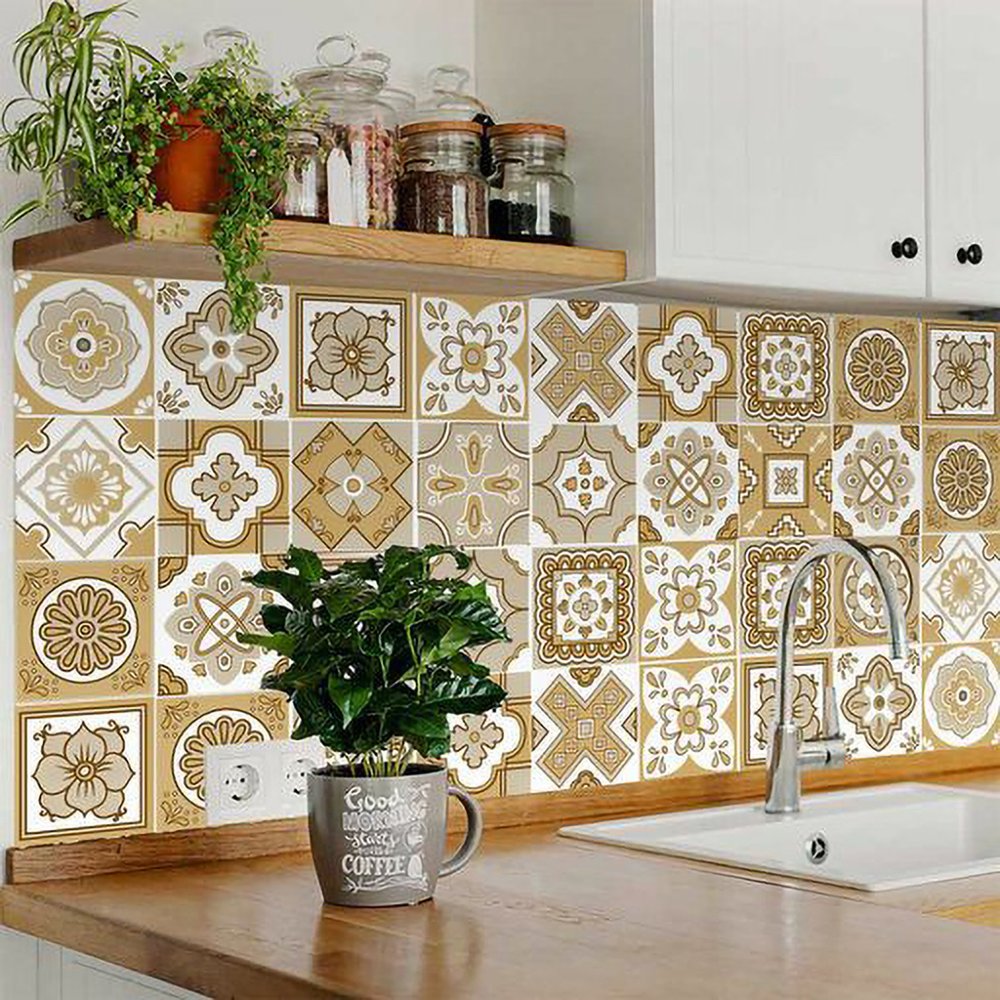 Create a unique look with these 8" x 8" Vintage Brown and White Peel and Stick Removable Tile stickers. These fabulous peel and stick tiles will add sophisticated flair and design to your kitchen backsplash, fireplace mantel, stair treads, half wall, bathroom or nook. These 8" square tile stickers are an easy, no mess solution to complete a personalized and colorful room makeover. Easy to apply on any clean dry flat surface, and easy to remove. Multi use and multi-room appeal make this design option is perfect for renters, landlords, college students and homeowners alike. Peel and stick tile decals make it easy to turn your space into a home. Removable without damage to surfaces. One kit contains 24 stickers. Kit includes multiple design styles and colorations to be displayed in any arrangement you choose.