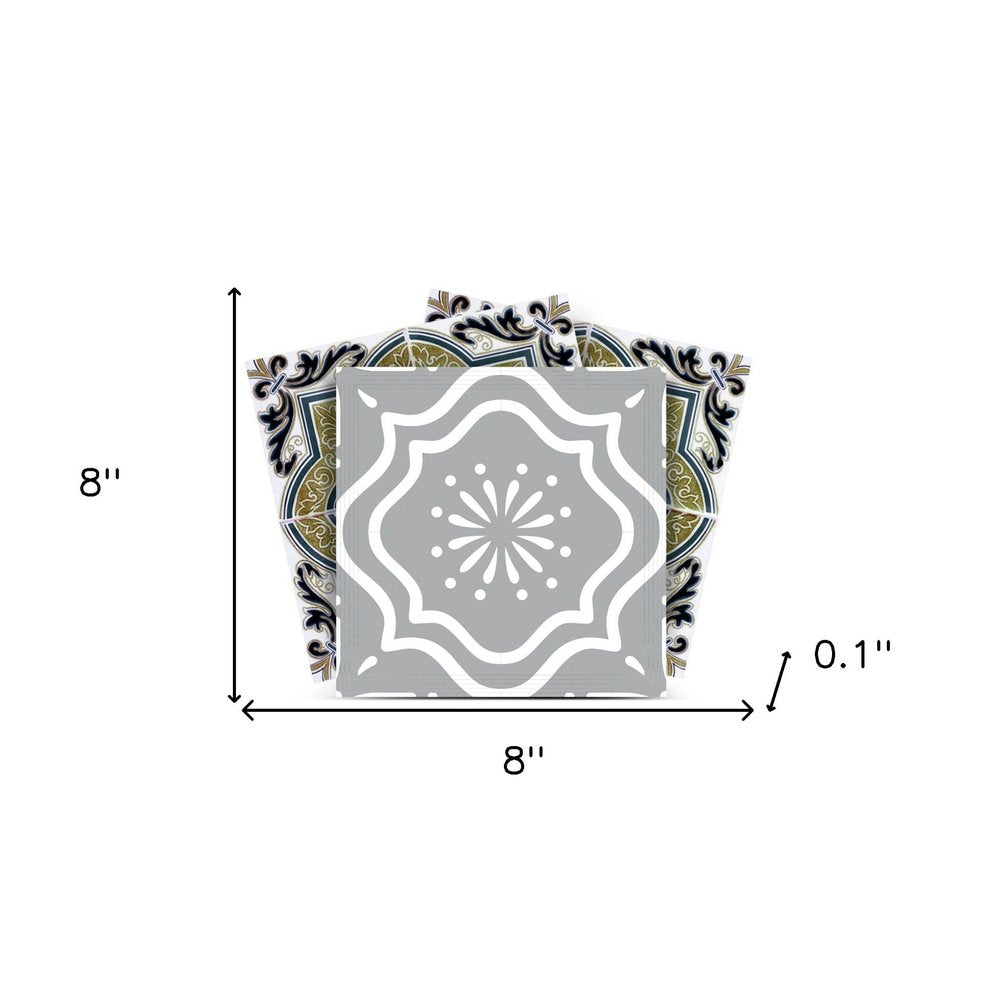 8" X 8" Vintage Sage Medallion Peel And Stick Removable Tiles