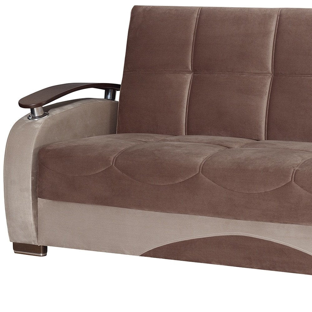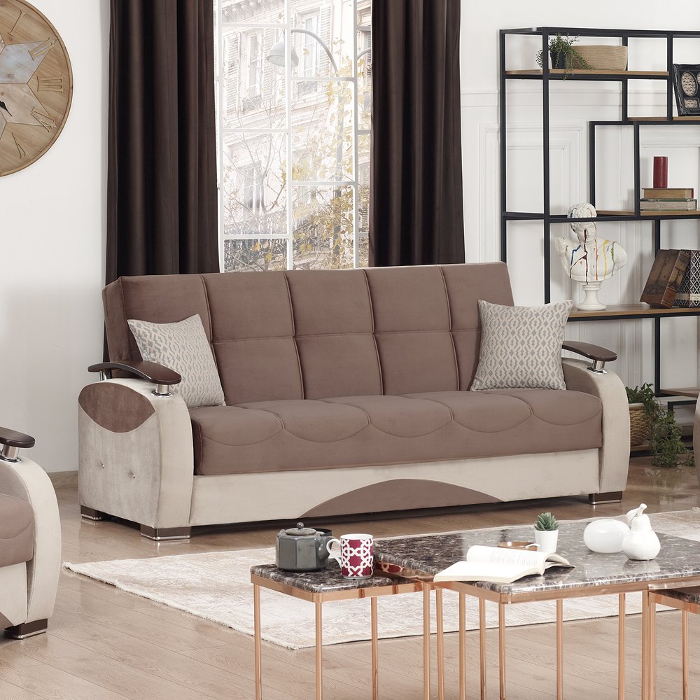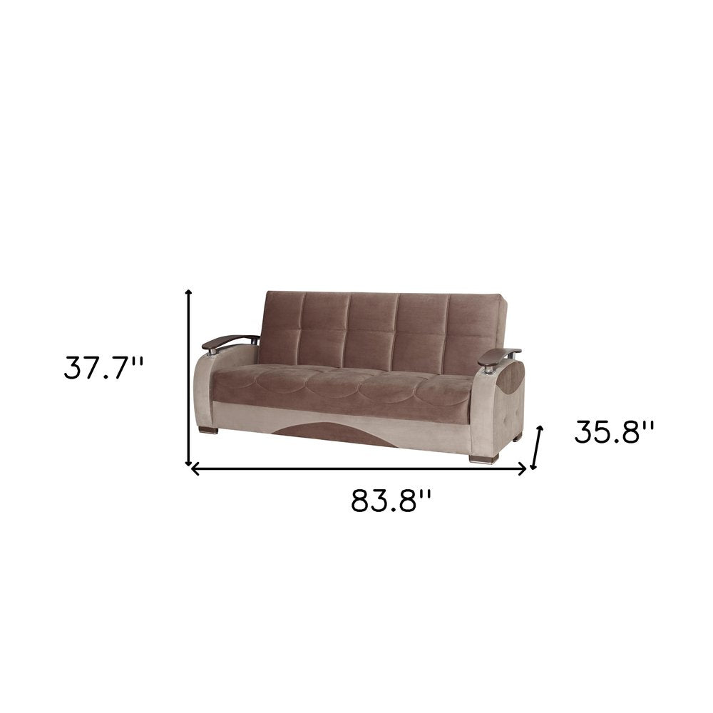 84" Brown Microfiber Convertible Futon Sleeper Sofa And Toss Pillows With Storage