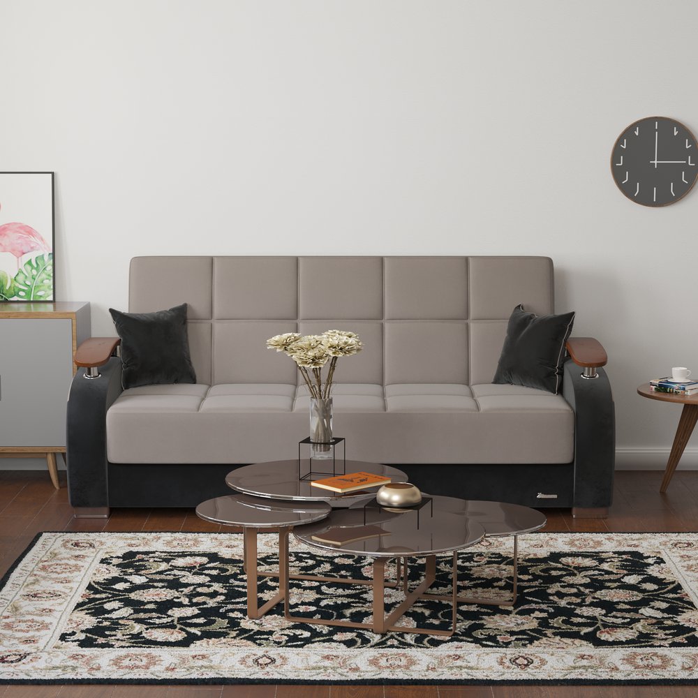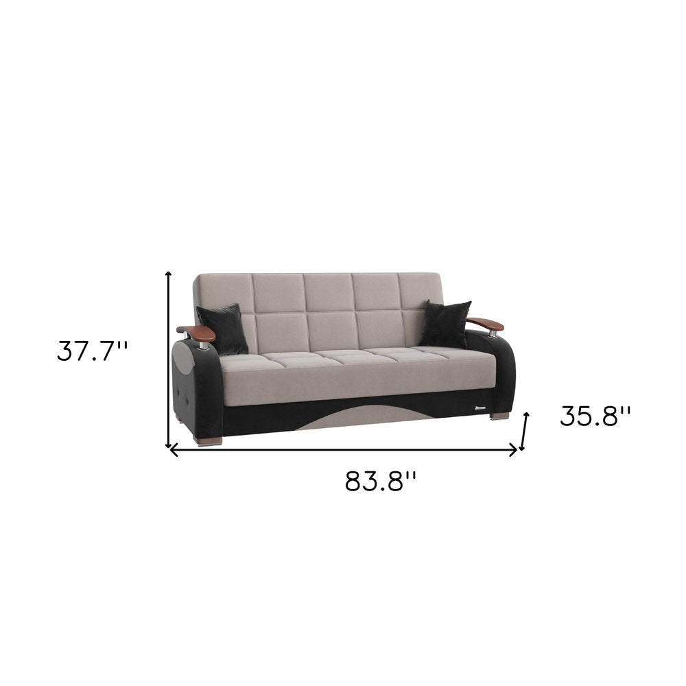84" Gray Microfiber Convertible Futon Sleeper Sofa And Toss Pillows With Storage