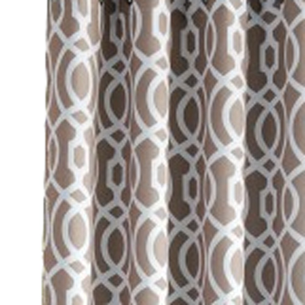 Enhance the look of your windows with this 84-inch taupe trellis black out window curtain panel. Perfect for adding a touch of contemporary style to any room, this single panel is designed to block out unwanted light. Made from high-quality polyester, it features a beautiful taupe and white color combination that will effortlessly complement your existing decor. Measuring 54 inches in width and 84 inches in length, this panel is the ideal choice for any standard-sized window. Bring function and style together with this blackout curtain panel, providing privacy and a darkened room for optimal relaxation. 84-inch H x 54-inch W x 1-inch D