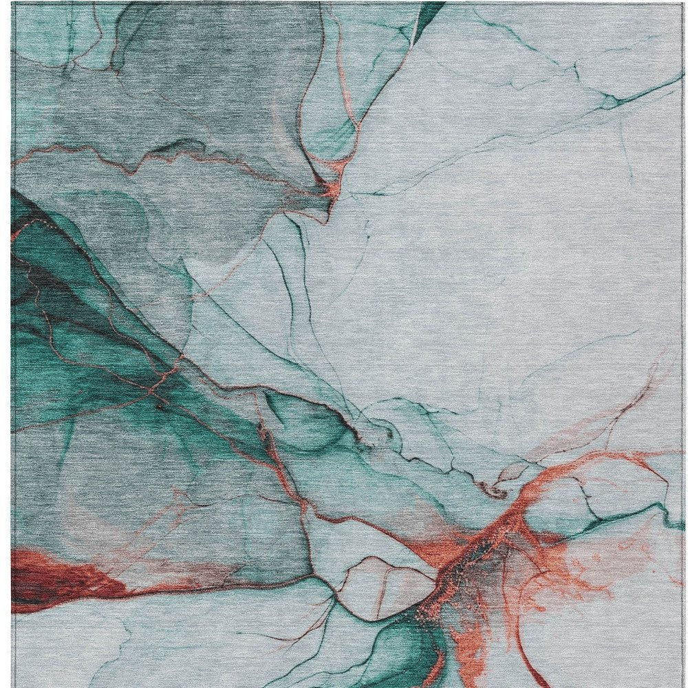 9' X 12' Teal Blue And Terra Cotta Abstract Washable Indoor Outdoor Area Rug