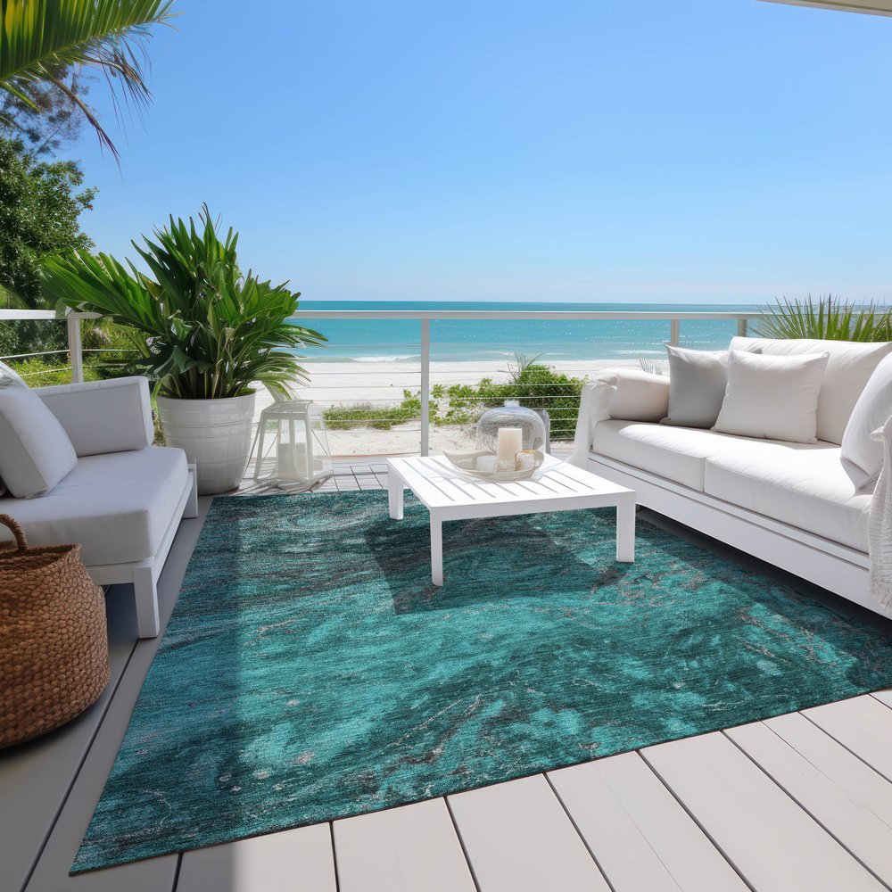 Add some artistry to your room with this 9-foot x 12-foot teal blue aqua and gray abstract washable indoor outdoor area rug. This rectangle shaped rug features an abstract design that will work well both indoors or out. A classic shape marries with a good-looking design for your living room, hall, bedroom, porch, patio, or poolside. Ideal for outdoor spaces or high traffic areas with kids and pets, this rug is made from heavy duty polyester that is stain resistant to help repel water, dirt, and stains. Makes a great way to dress up your patio, porch, or poolside, but also works well as a durable and easy to maintain option in the kitchen, family room, or mudroom. 108-inch h x 144-inch w x 0.19-inch d.