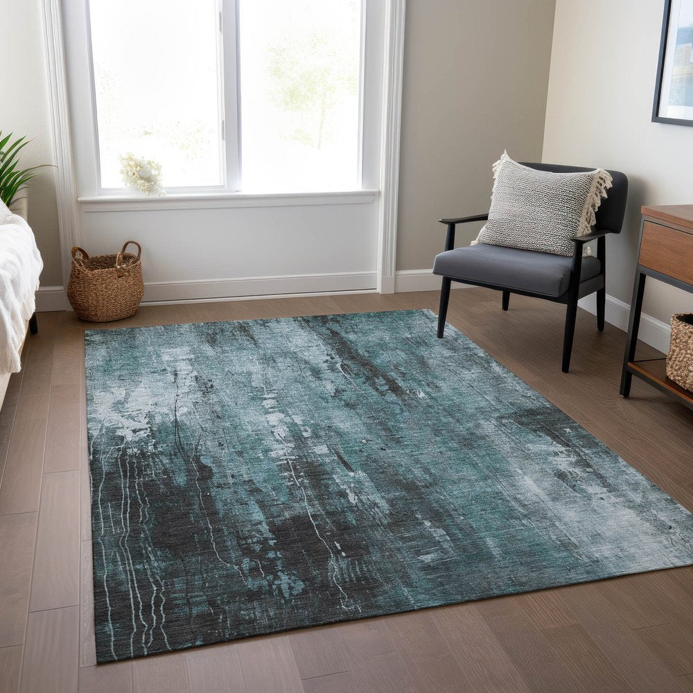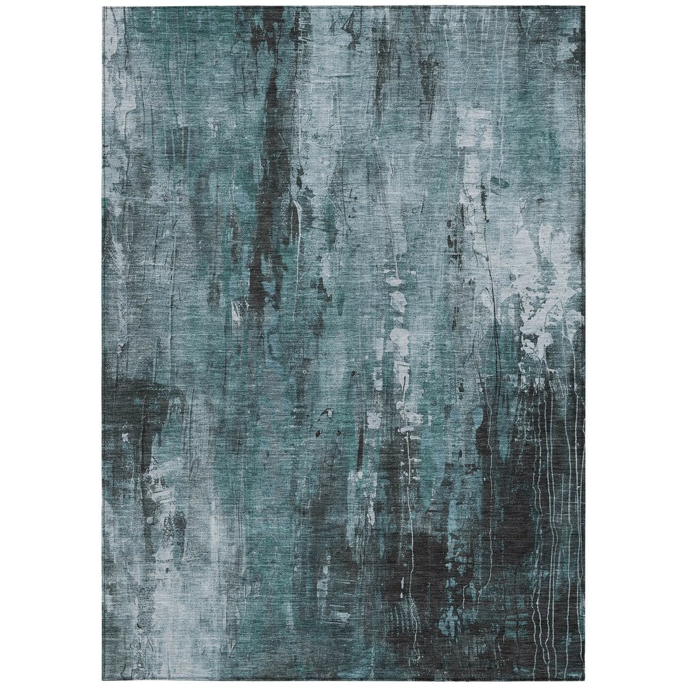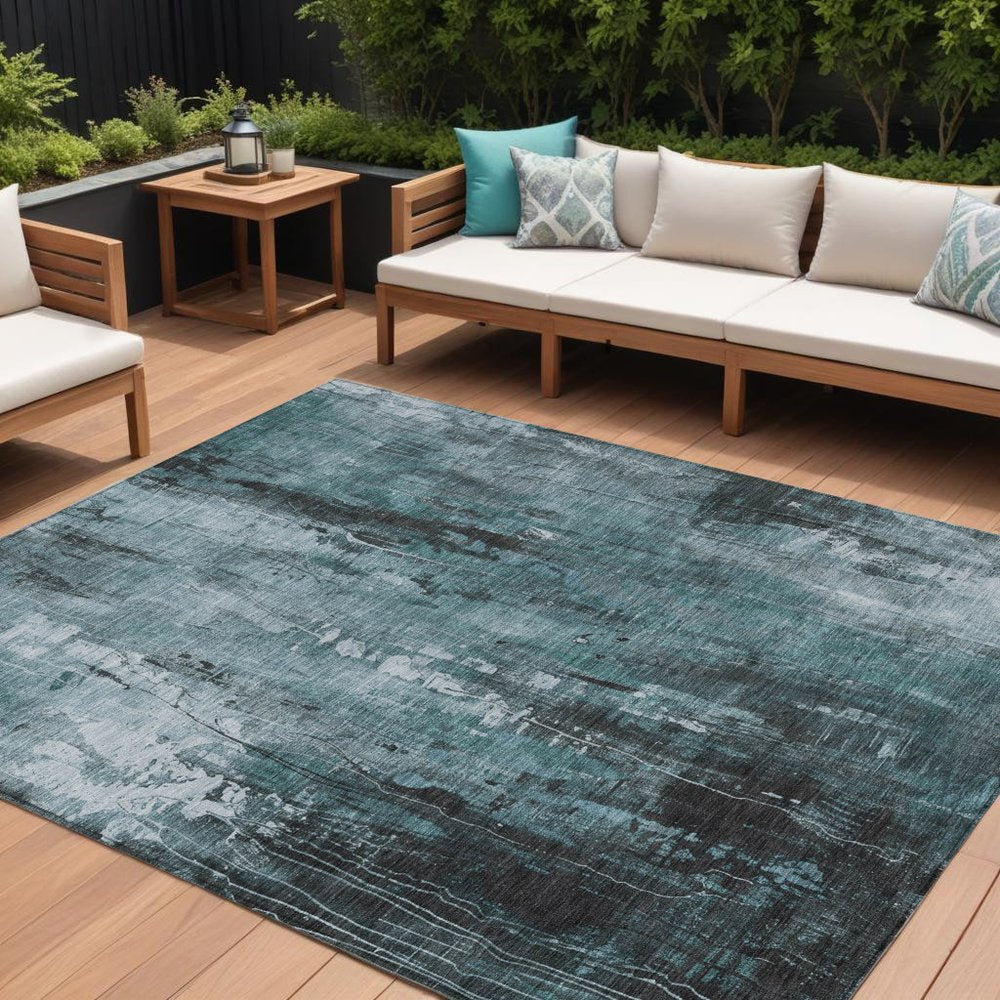 9' X 12' Teal Blue Gray And Ivory Abstract Washable Indoor Outdoor Area Rug