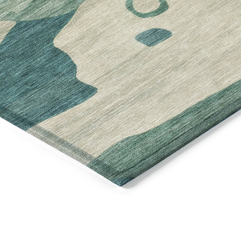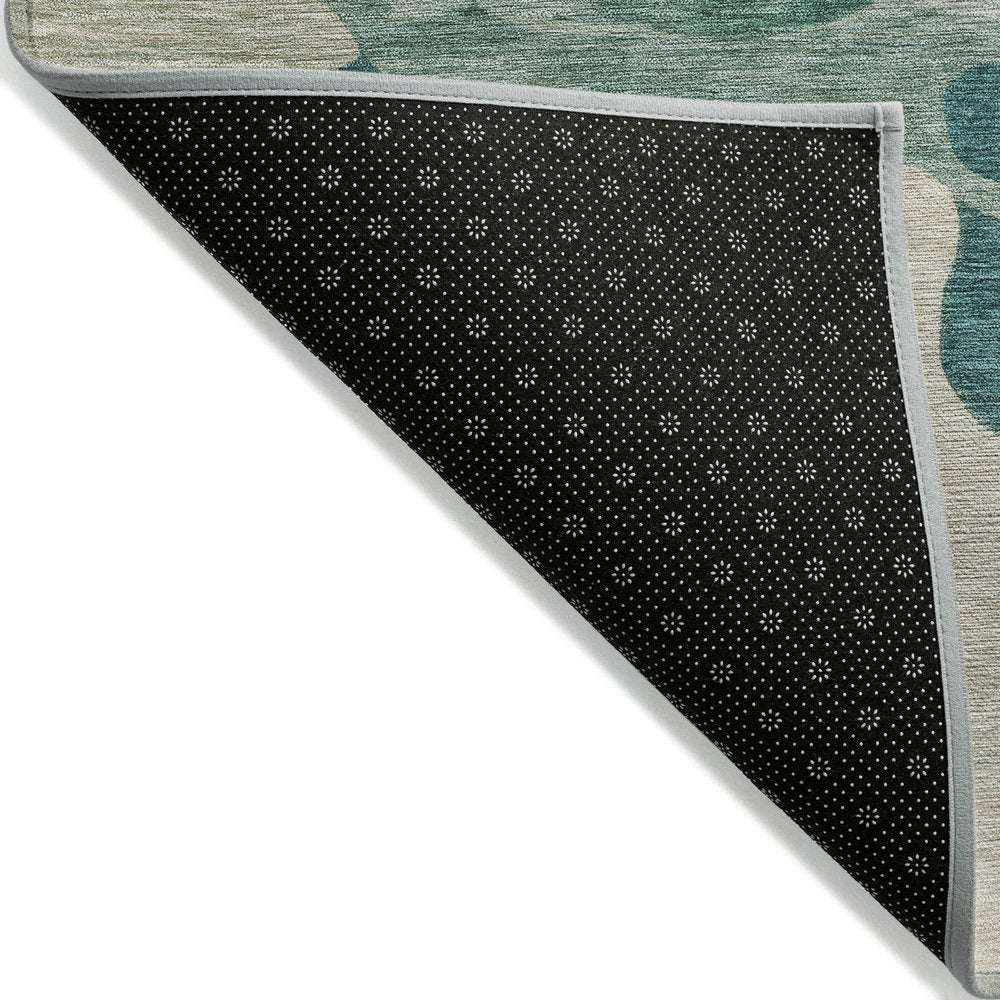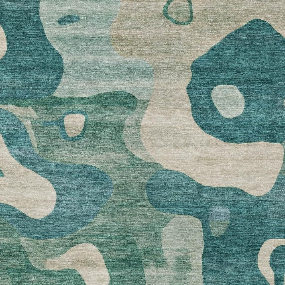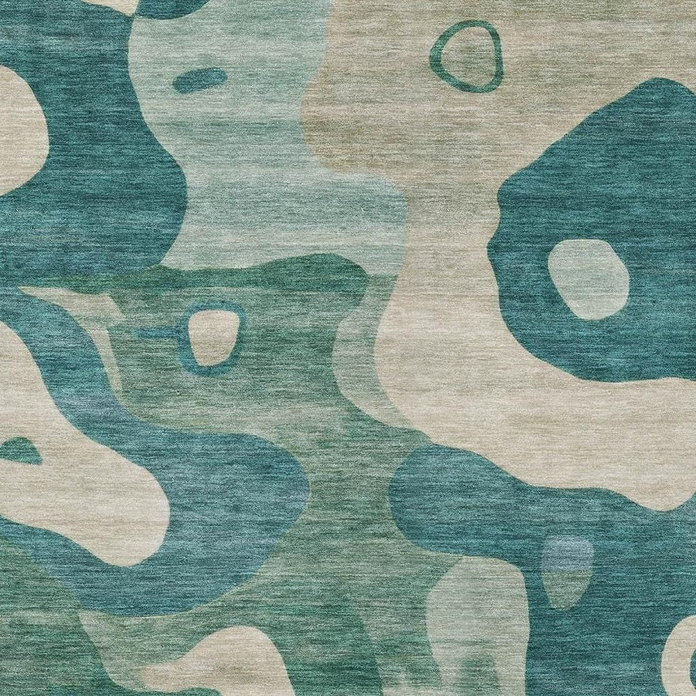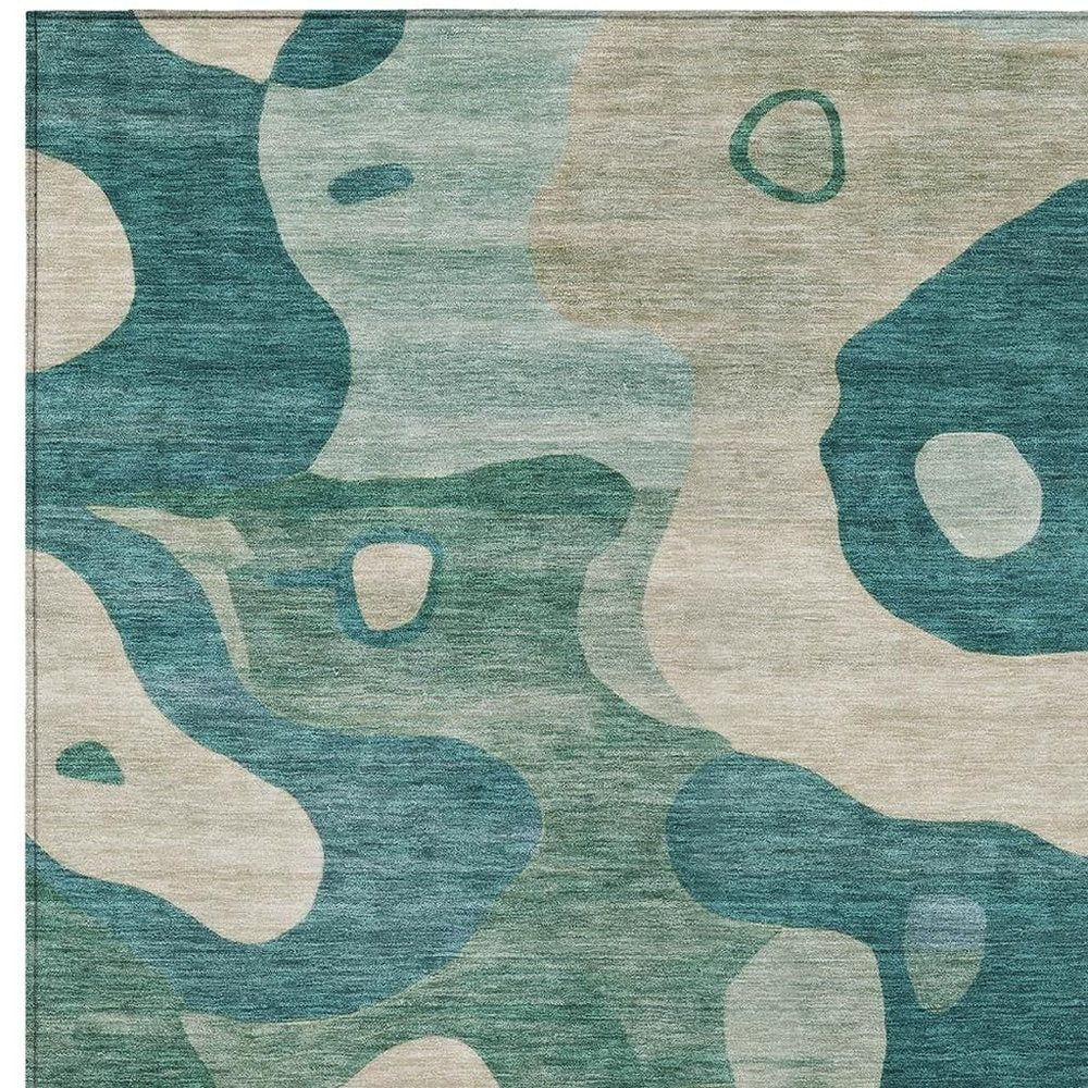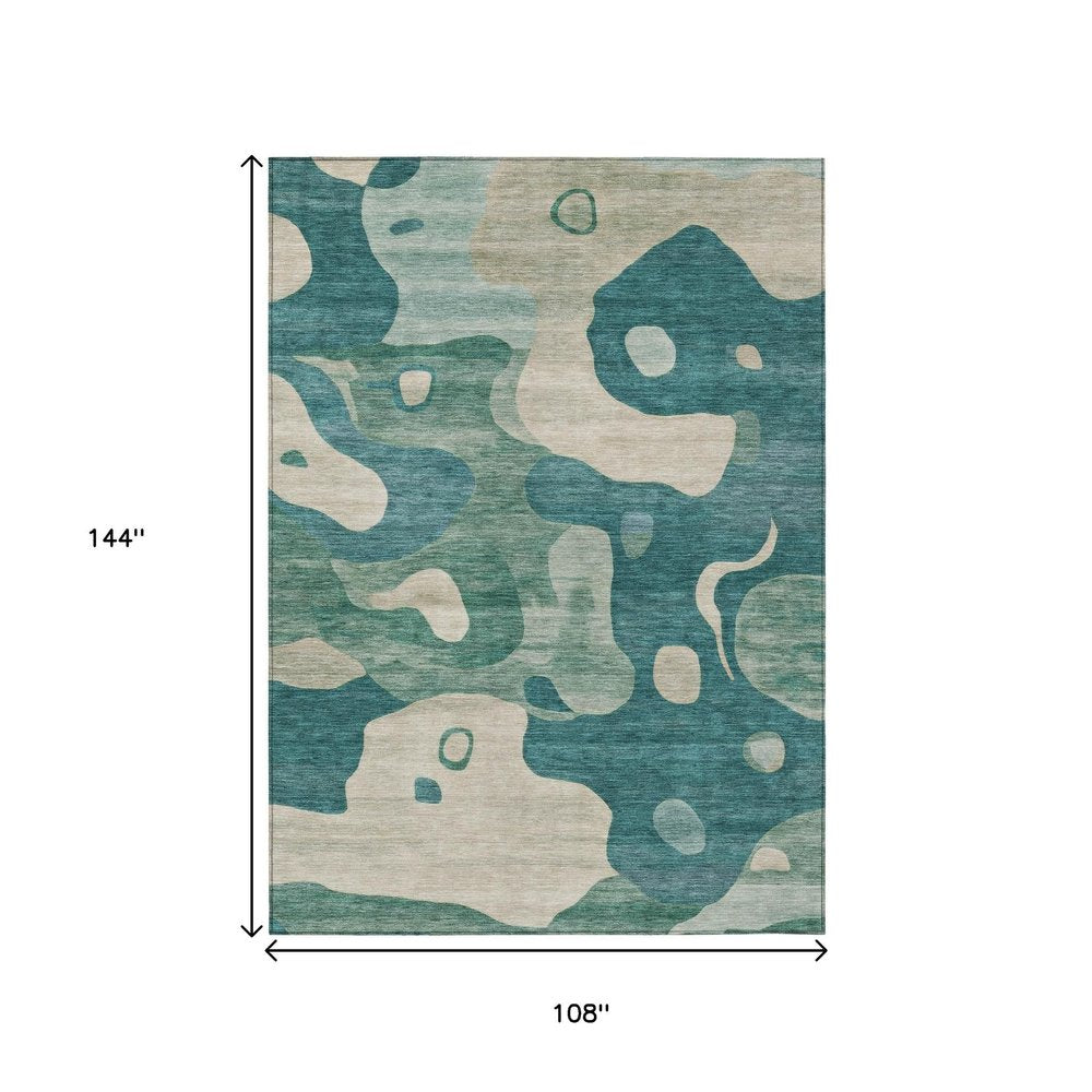 9' X 12' Teal Blue Ivory And Beige Abstract Washable Indoor Outdoor Area Rug