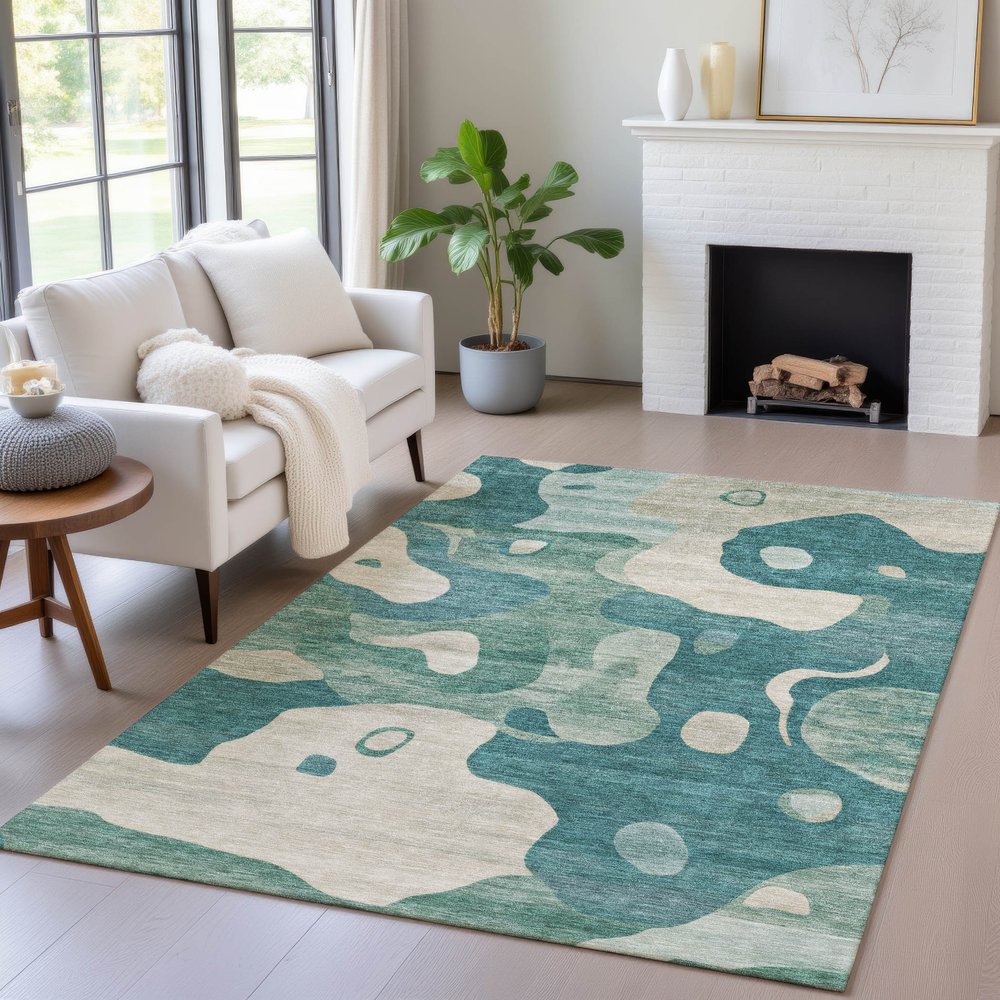 This 9-foot x 12-foot teal blue ivory and beige abstract washable indoor outdoor area rug, is a great way to add warmth to a room. This rectangle shaped rug features an abstract design that will work well both indoors or out. A classic shape marries with a good-looking design for your living room, hall, bedroom, porch, patio, or poolside. Ideal for outdoor spaces or high traffic areas with kids and pets, this rug is made from heavy duty polyester that is stain resistant to help repel water, dirt, and stains. Makes a great way to dress up your patio, porch, or poolside, but also works well as a durable and easy to maintain option in the kitchen, family room, or mudroom. 108-inch h x 144-inch w x 0.19-inch d.