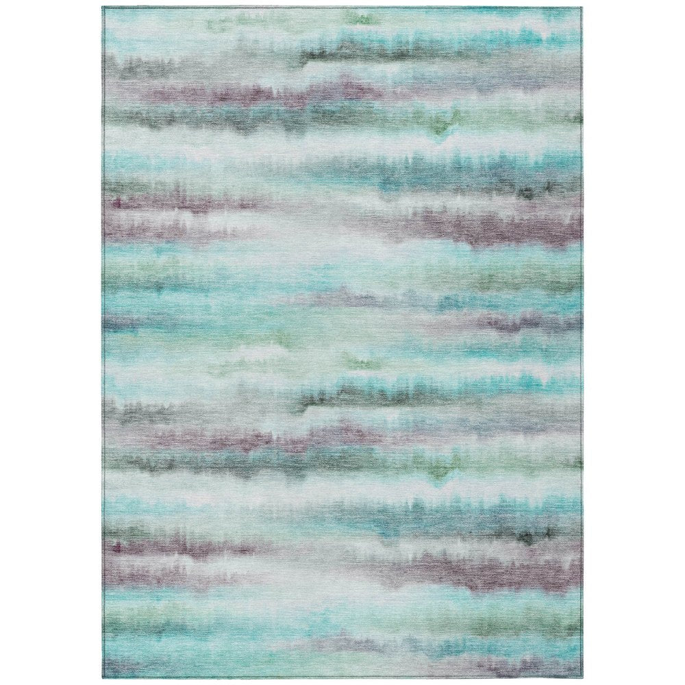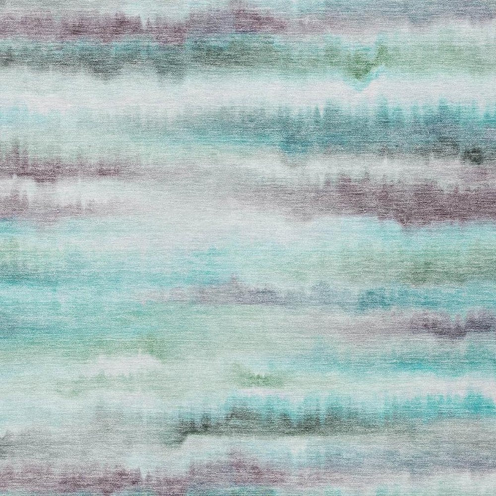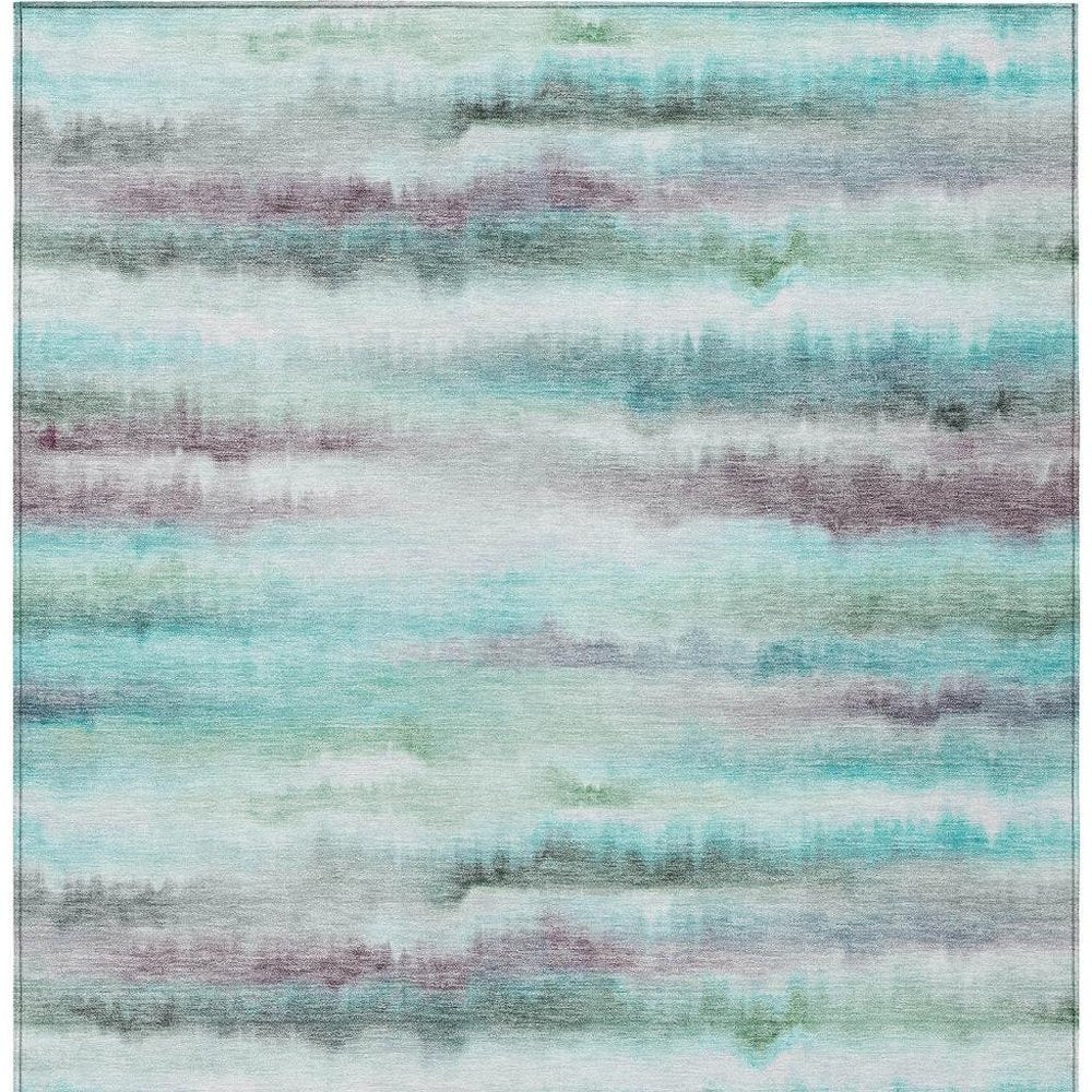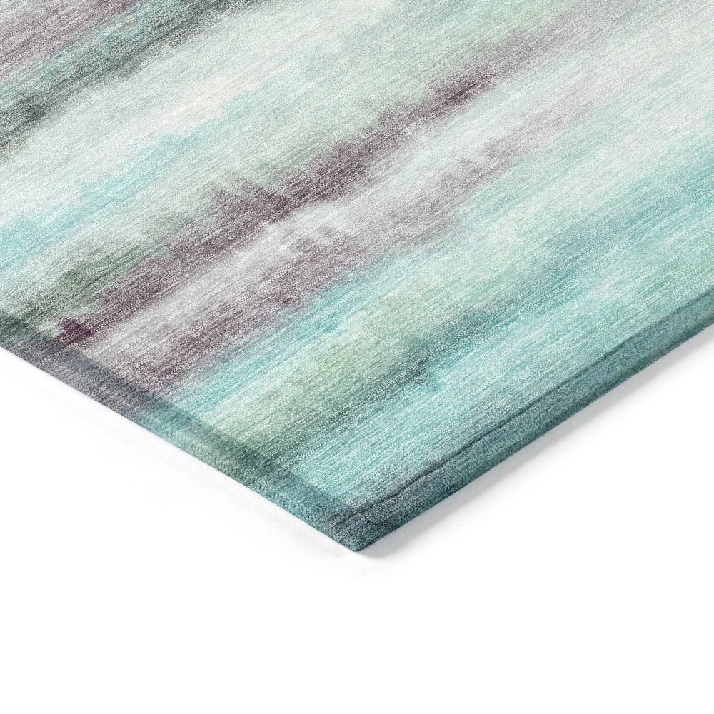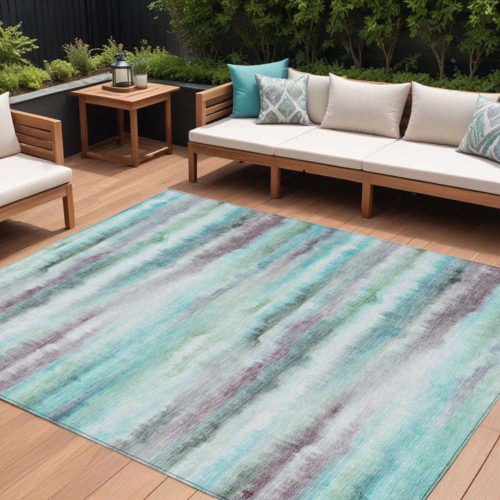 9' X 12' Teal Blue Plum And Ivory Striped Washable Indoor Outdoor Area Rug