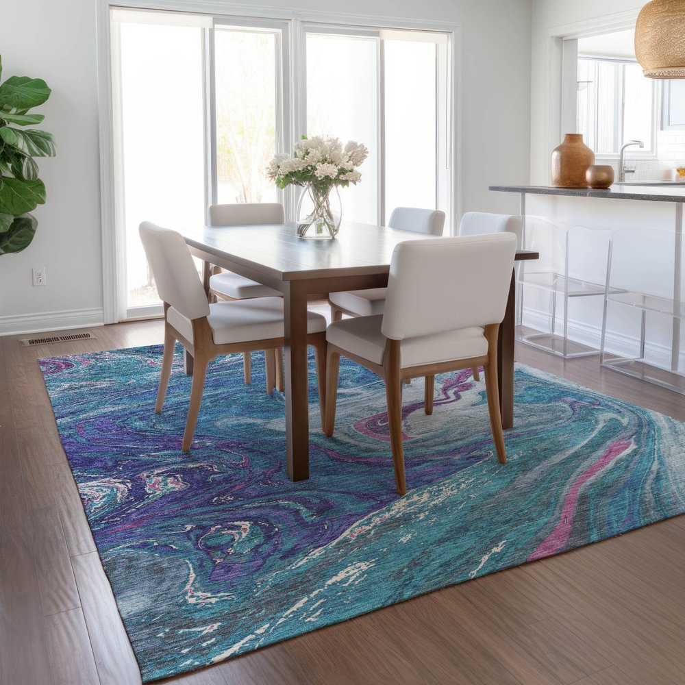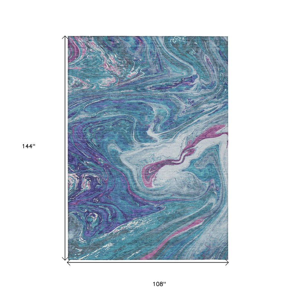 9' X 12' Teal Blue Purple And Pink Abstract Washable Indoor Outdoor Area Rug