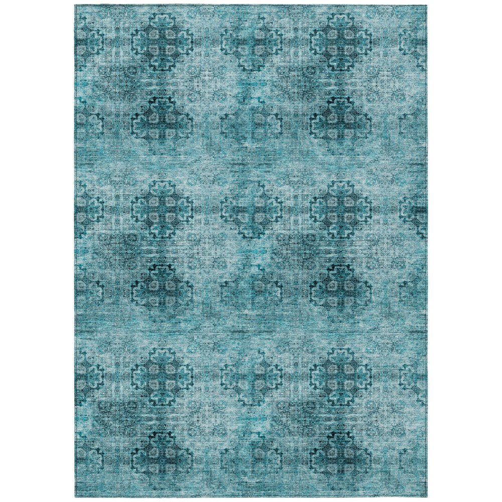 Set an inviting tone in your space with this 9-foot x 12-foot teal floral medallion washable nonskid indoor outdoor area rug. This rectangle shaped rug features a floral medallion design in teal to give it visual interest. A classic shape marries with a good-looking design for your space ideal for spaces with kids and pets, this rug is stain resistant to help repel stains and spilled liquids. Place this area rug against a hardwood or tile floor and it will enliven your living space with style and sophistication. 108-inch H x 144-inch W x 0.19-inch D