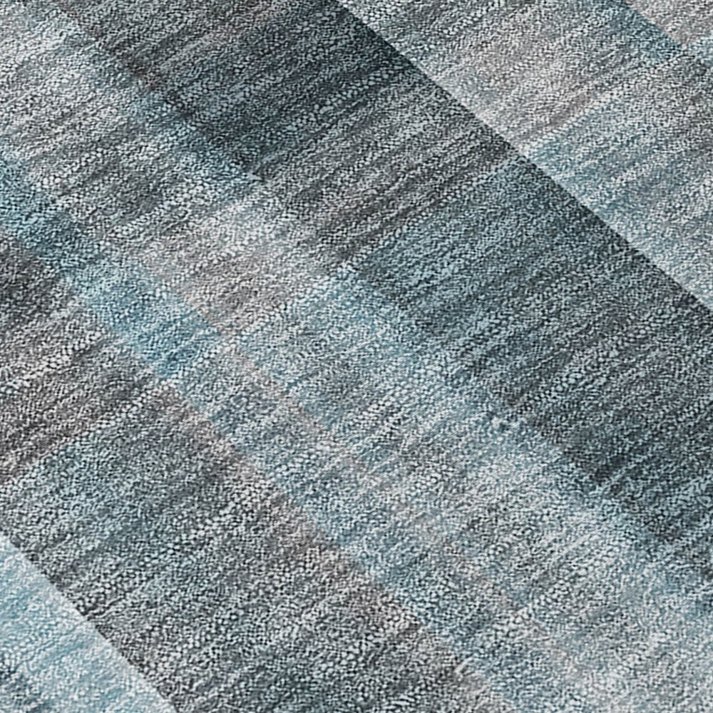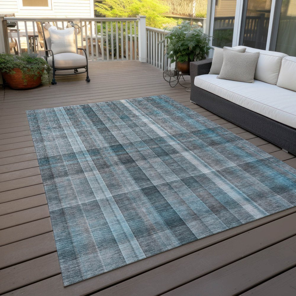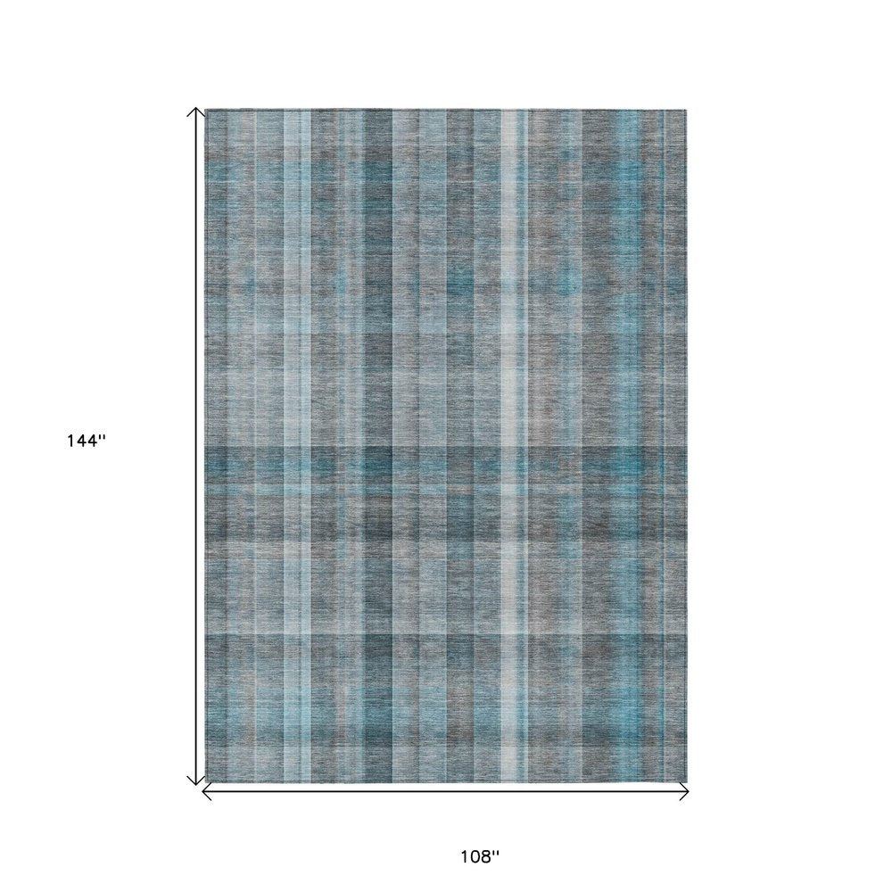 9' X 12' Teal Plaid Washable Non Skid Indoor Outdoor Area Rug