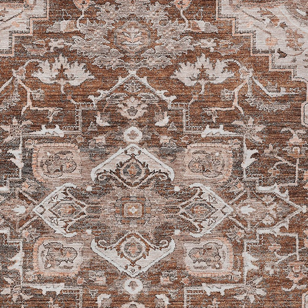 9' X 12' Terra Cotta Brown And Copper Oriental Washable Indoor Outdoor Area Rug