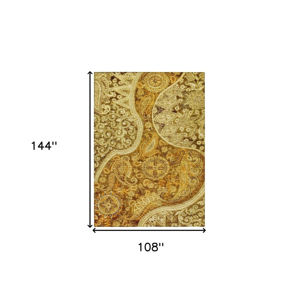 9' X 12' Terra Cotta Brown And Gold Floral Medallion Washable Indoor Outdoor Area Rug