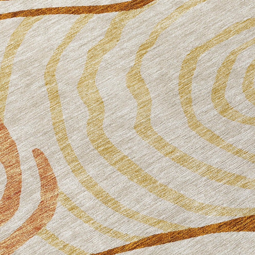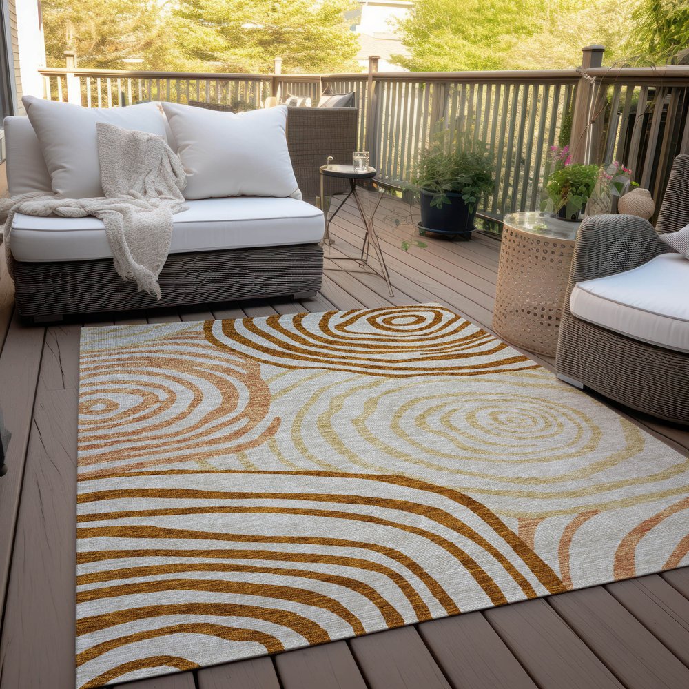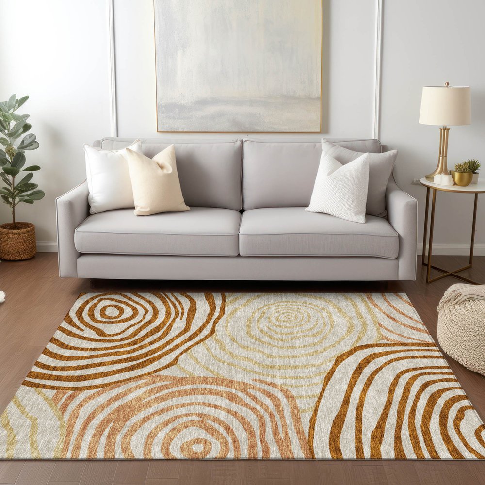 9' X 12' Terra Cotta Copper And Gold Abstract Washable Indoor Outdoor Area Rug