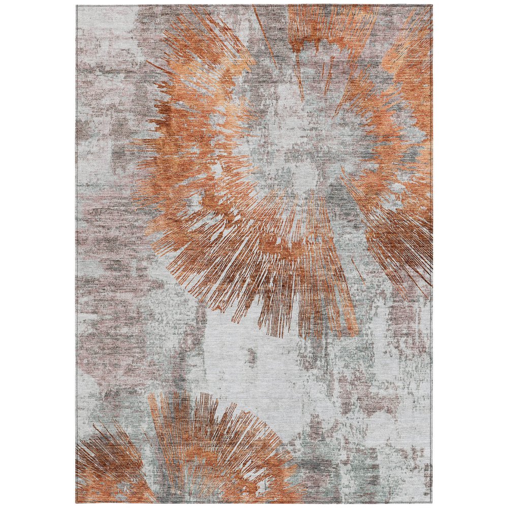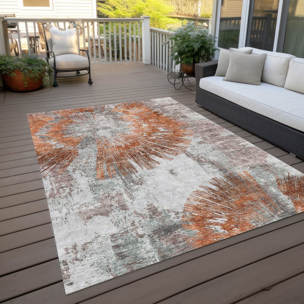 9' X 12' Terra Cotta Copper And Taupe Abstract Washable Indoor Outdoor Area Rug