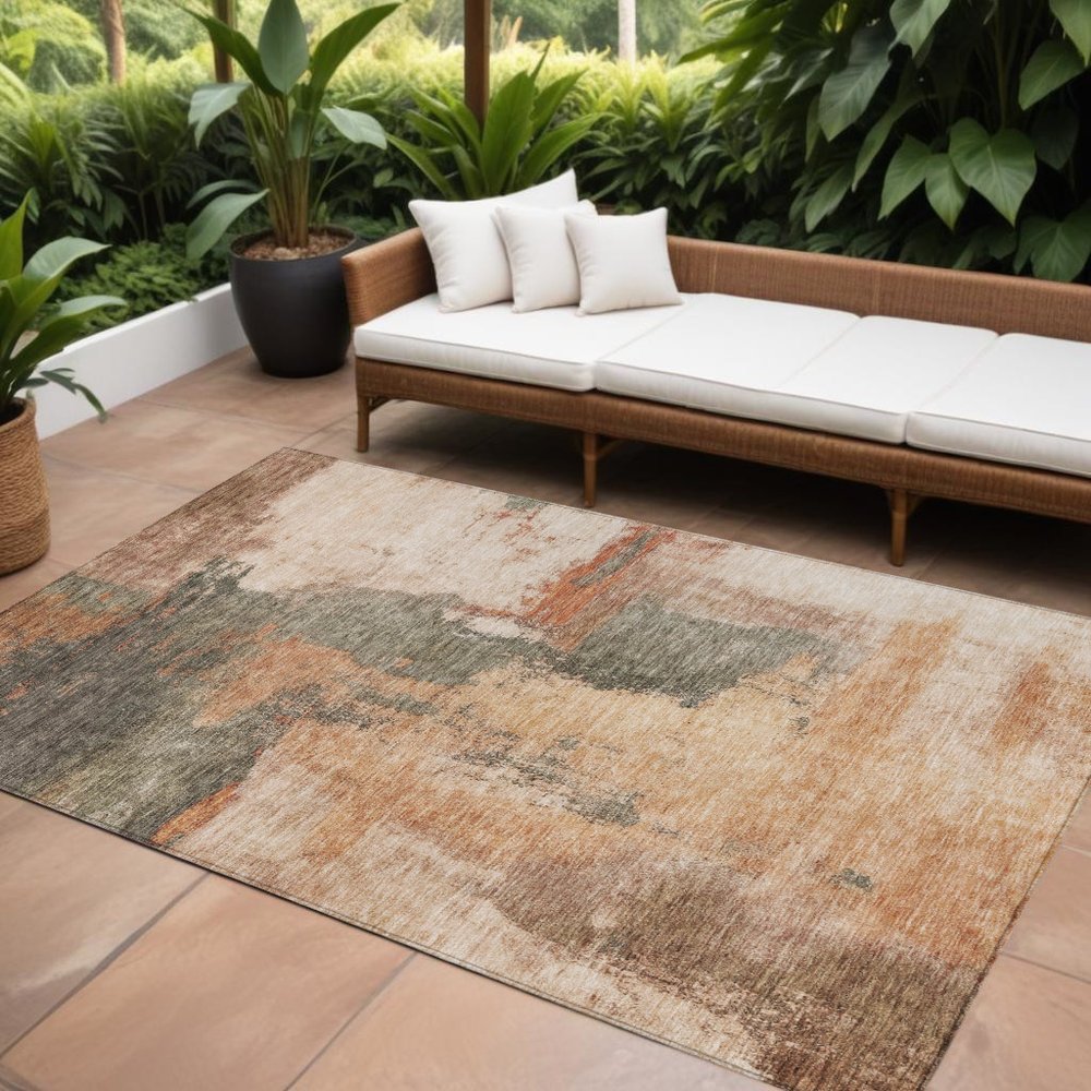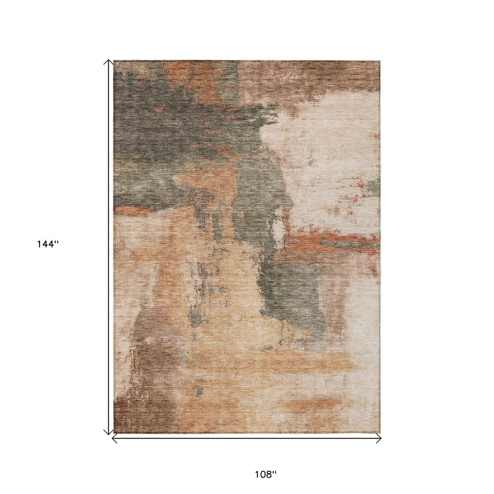 9' X 12' Terra Cotta Gray And Brown Abstract Washable Indoor Outdoor Area Rug