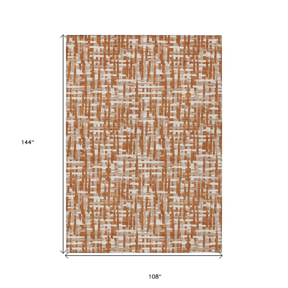 9' X 12' Terra Cotta Tan And Ivory Abstract Washable Indoor Outdoor Area Rug