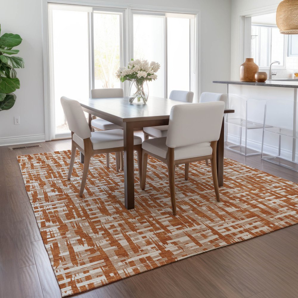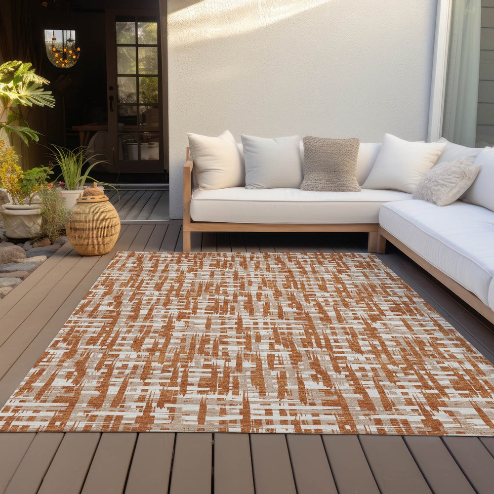 Set an inviting tone in your space with this 9-foot x 12-foot terra cotta tan and ivory abstract washable indoor outdoor area rug. This rectangle shaped rug features a abstract design that will work well both indoors or out. A classic shape marries with good looking design for your living room, hall, bedroom, porch, patio, or poolside. Ideal for outdoor spaces or high traffic areas with kids and pets, this rug is made from heavy duty polyester that is stain resistant to help repel water, dirt, and stains. Makes a great way to dress up your patio, porch, or poolside, but also works well as a durable and easy to maintain option in the kitchen, family room, or mudroom. 108-inch h x 144-inch w x 0.19-inch d.