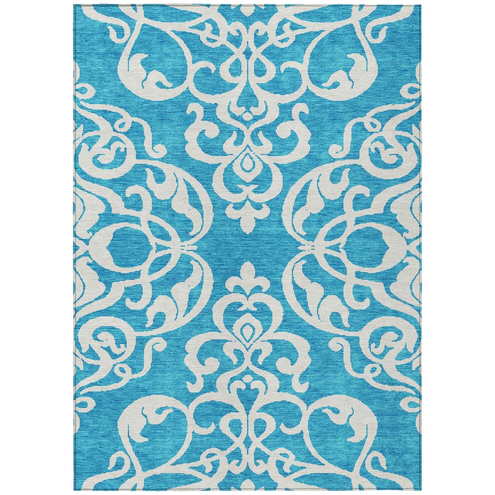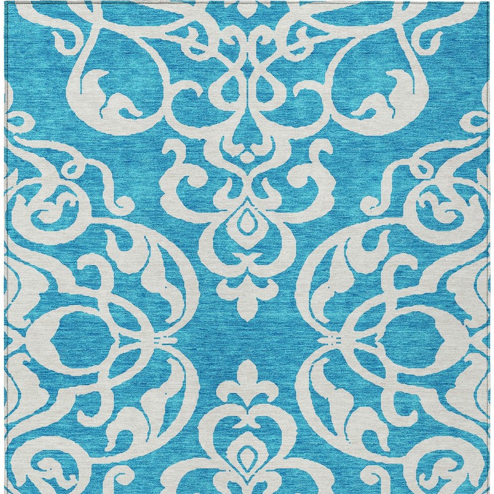 This 9-foot x 12-foot turquoise and ivory damask washable indoor outdoor area rug, is a great way to add warmth to a room. This rectangle shaped rug features a damask design that will work well both indoors or out. A classic shape marries with good looking design for your living room, hall, bedroom, porch, patio, or poolside. Ideal for outdoor spaces or high traffic areas with kids and pets, this rug is made from heavy duty polyester that is stain resistant to help repel water, dirt, and stains. Makes a great way to dress up your patio, porch, or poolside, but also works well as a durable and easy to maintain option in the kitchen, family room, or mudroom. 108-inch h x 144-inch w x 0.19-inch d.