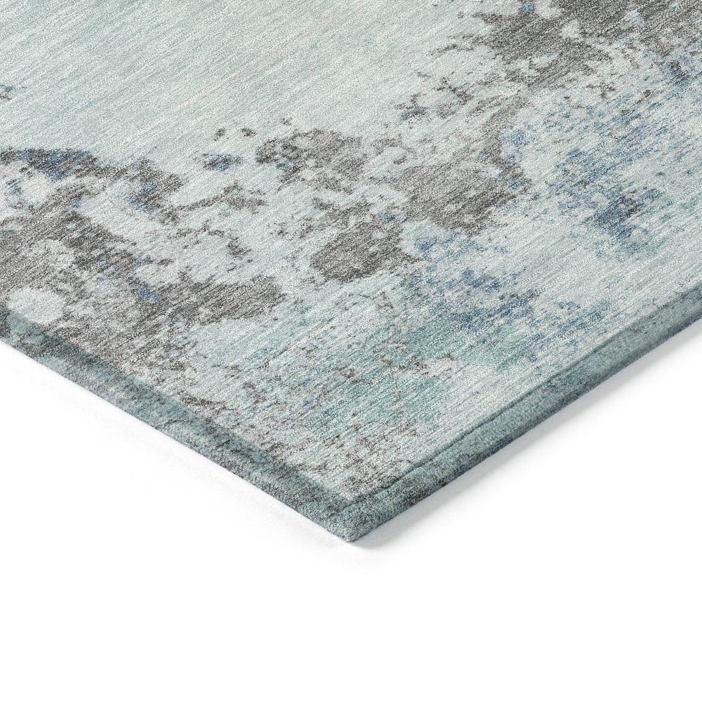 9' X 12' Turquoise Denim Blue And Gray Abstract Washable Indoor Outdoor Area Rug