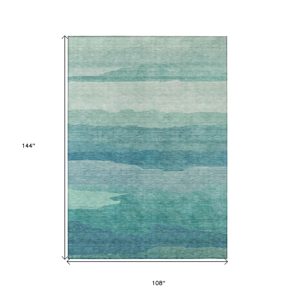 9' X 12' Turquoise Striped Washable Indoor Outdoor Area Rug