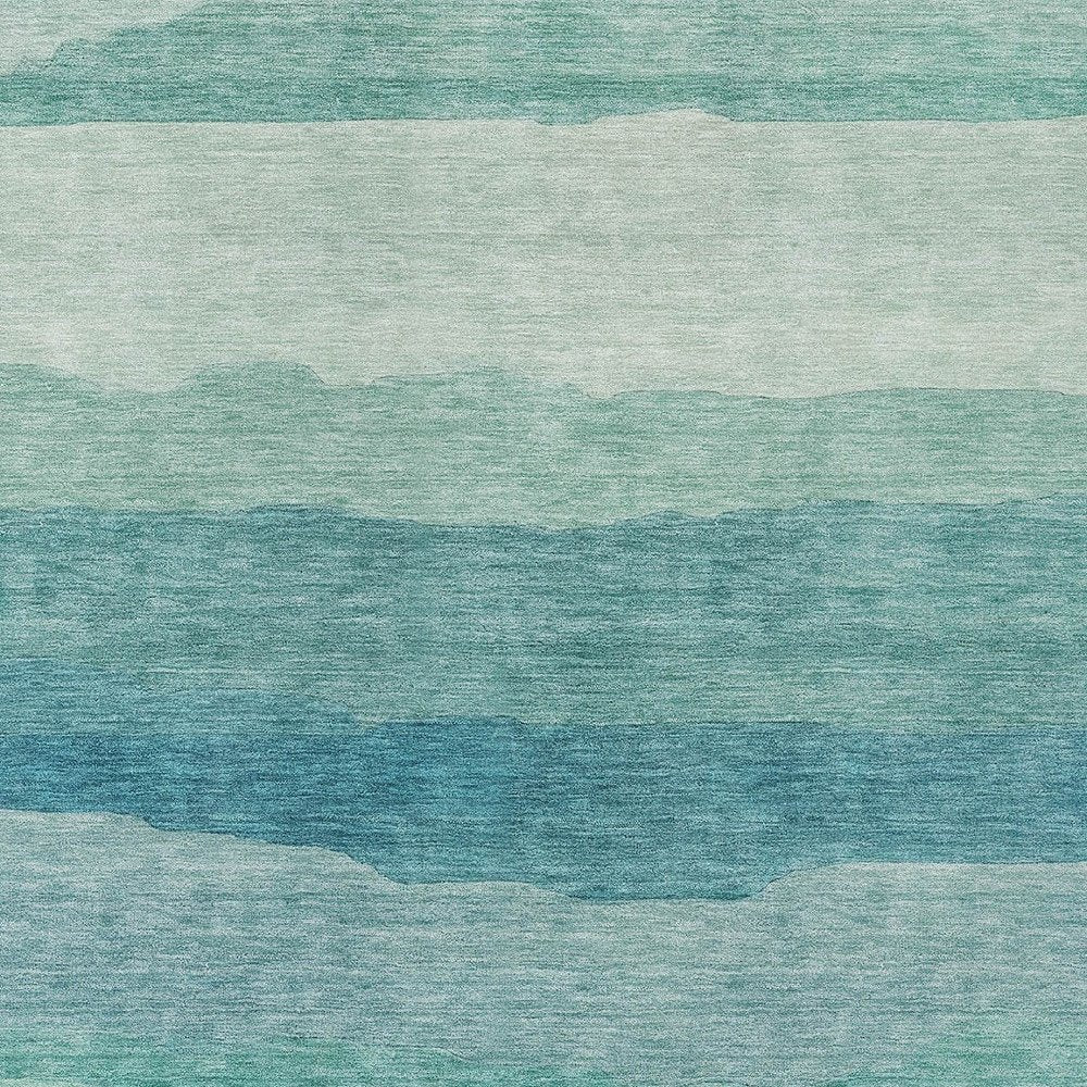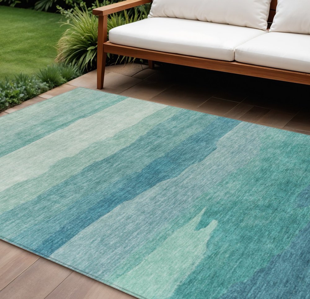 This 9-foot x 12-foot turquoise striped washable indoor outdoor area rug, is a great way to add warmth to a room. This rectangle shaped rug features a striped design that will work well both indoors or out. A classic shape marries with good looking design for your living room, hall, bedroom, porch, patio, or poolside. Ideal for outdoor spaces or high traffic areas with kids and pets, this rug is made from heavy duty polyester that is stain resistant to help repel water, dirt, and stains. Makes a great way to dress up your patio, porch, or poolside, but also works well as a durable and easy to maintain option in the kitchen, family room, or mudroom. 108-inch h x 144-inch w x 0.19-inch d.