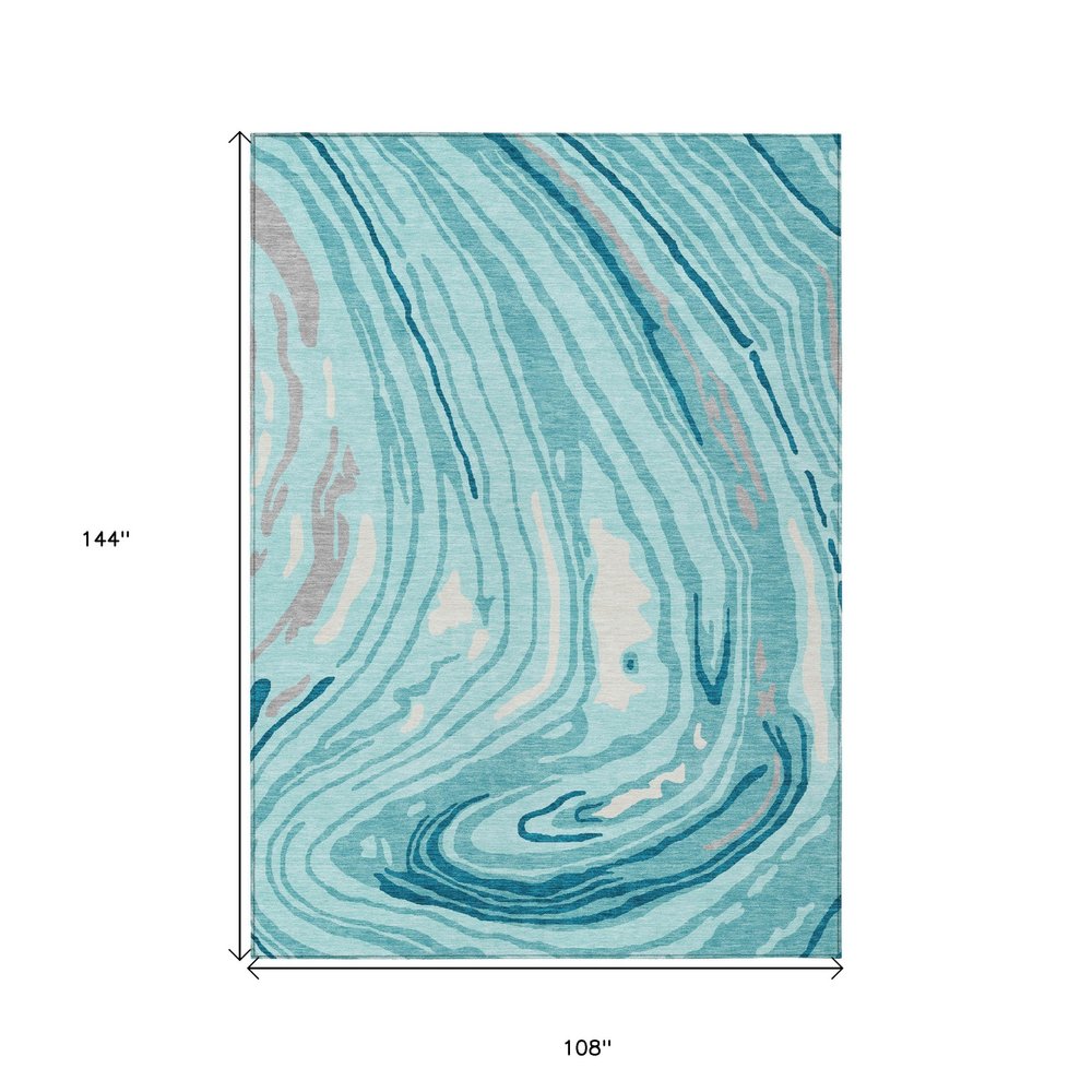 9' X 12' Turquoise Teal Blue And Gray Abstract Washable Indoor Outdoor Area Rug