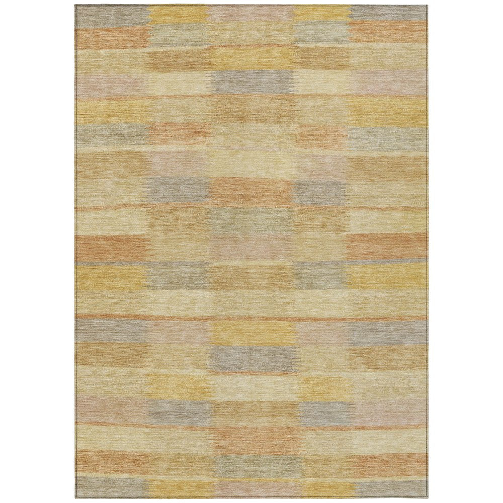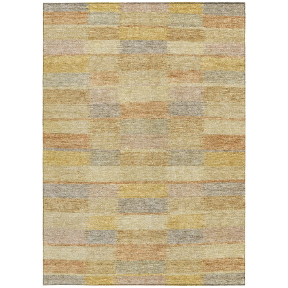 Set an inviting tone in your space with this 9-foot x 12-foot wheat beige and gold striped washable indoor outdoor area rug. This rectangle shaped rug features a striped design that will work well both indoors or out. A classic shape marries with good looking design for your living room, hall, bedroom, porch, patio, or poolside. Ideal for outdoor spaces or high traffic areas with kids and pets, this rug is made from heavy duty polyester that is stain resistant to help repel water, dirt, and stains. Makes a great way to dress up your patio, porch, or poolside, but also works well as a durable and easy to maintain option in the kitchen, family room, or mudroom. 108-inch h x 144-inch w x 0.19-inch d.