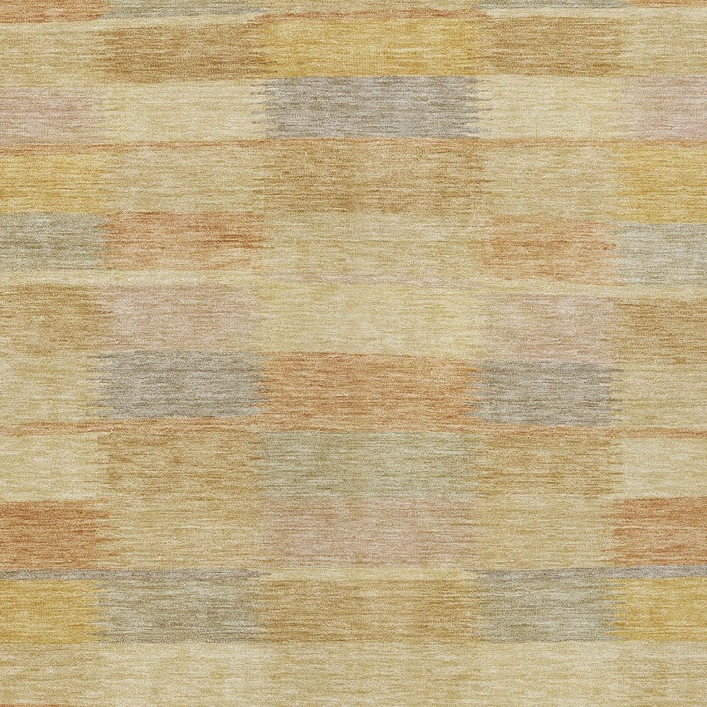 9' X 12' Wheat Beige And Gold Striped Washable Indoor Outdoor Area Rug