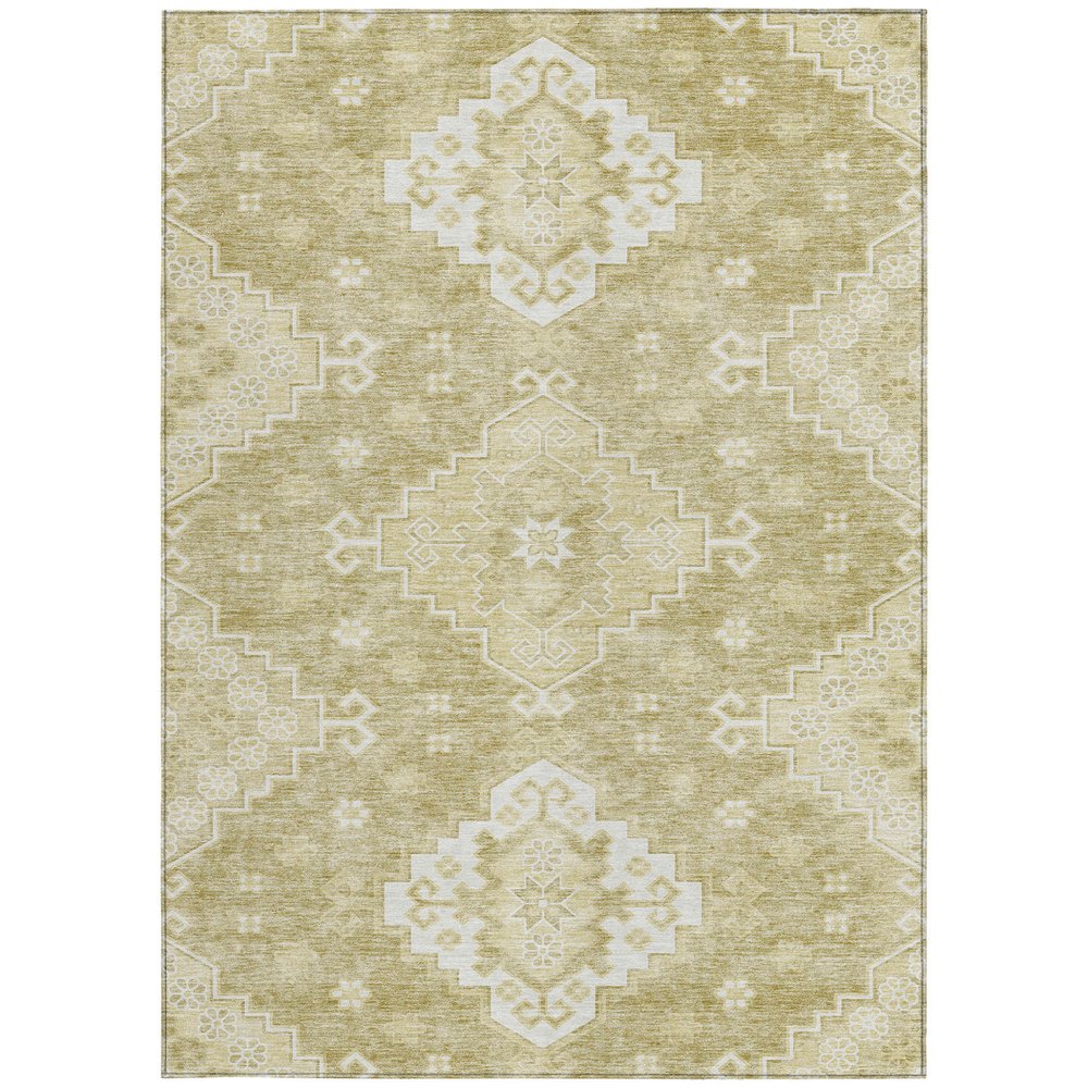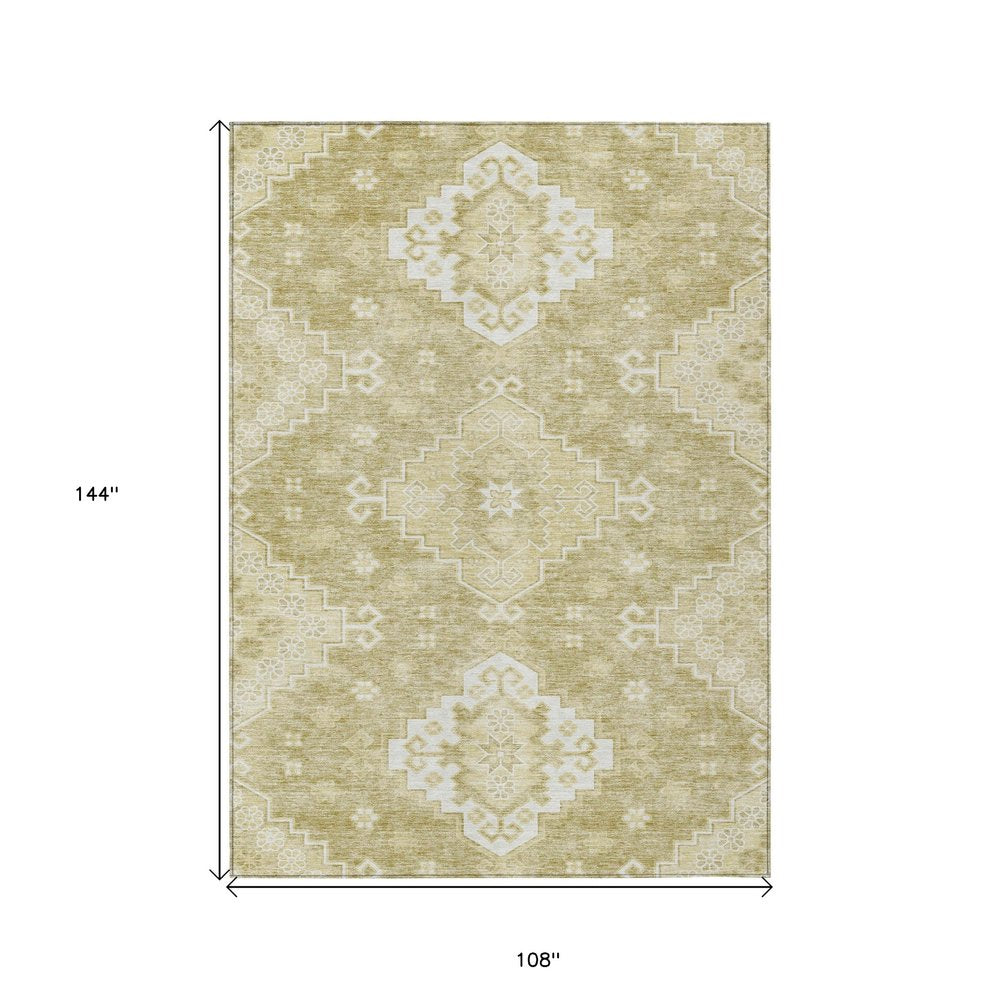 9' X 12' Wheat Gold And Ivory Medallion Washable Indoor Outdoor Area Rug