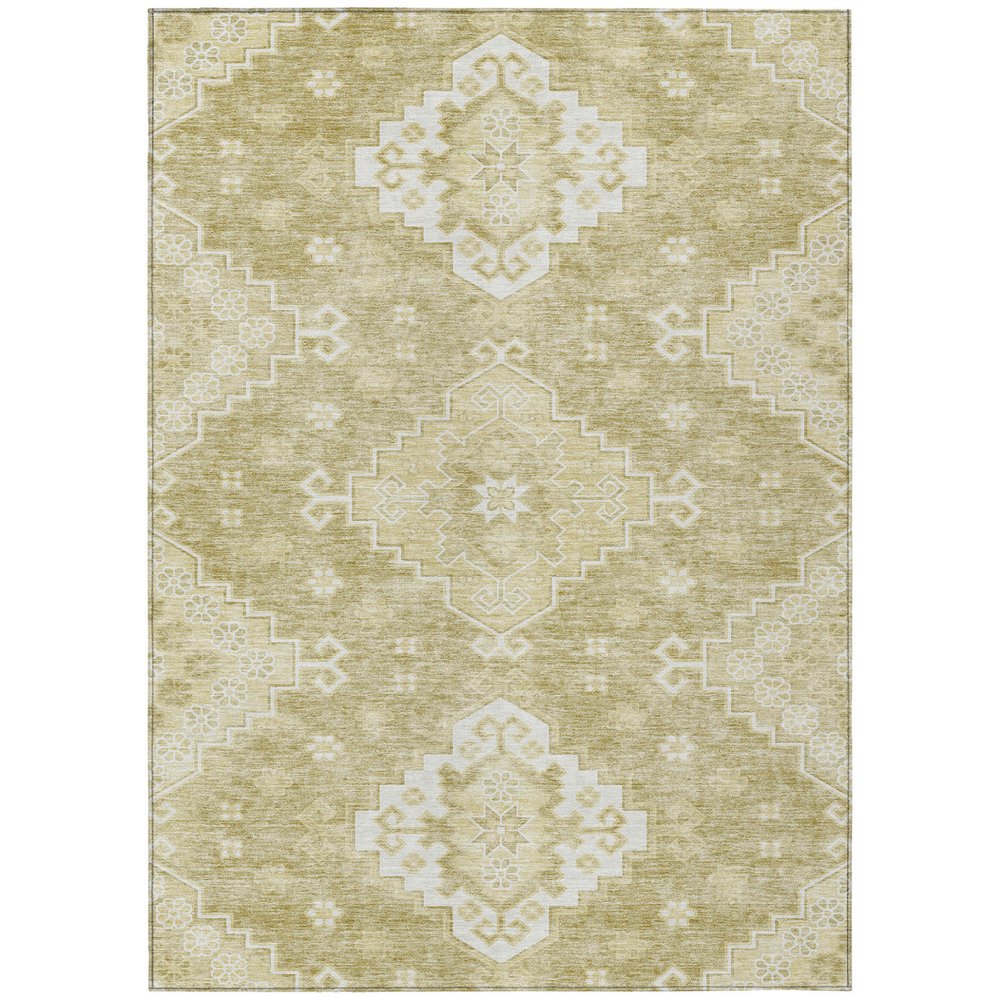 Add some artistry to your room with this 9-foot x 12-foot wheat gold and ivory medallion washable indoor outdoor area rug. This rectangle shaped rug features a medallion design that will work well both indoors or out. A classic shape marries with good looking design for your living room, hall, bedroom, porch, patio, or poolside. Ideal for outdoor spaces or high traffic areas with kids and pets, this rug is made from heavy duty polyester that is stain resistant to help repel water, dirt, and stains. Makes a great way to dress up your patio, porch, or poolside, but also works well as a durable and easy to maintain option in the kitchen, family room, or mudroom. 108-inch h x 144-inch w x 0.19-inch d.