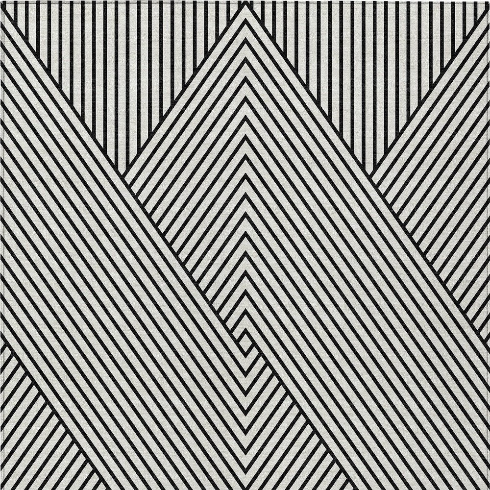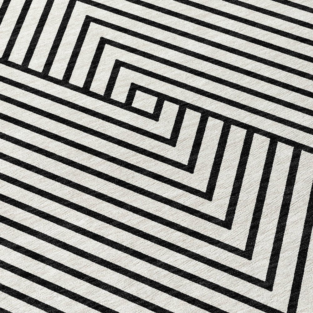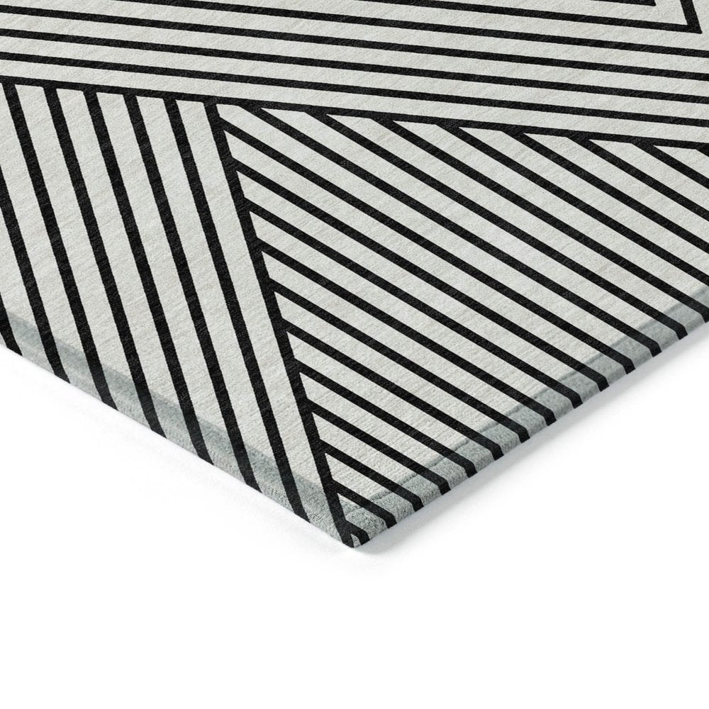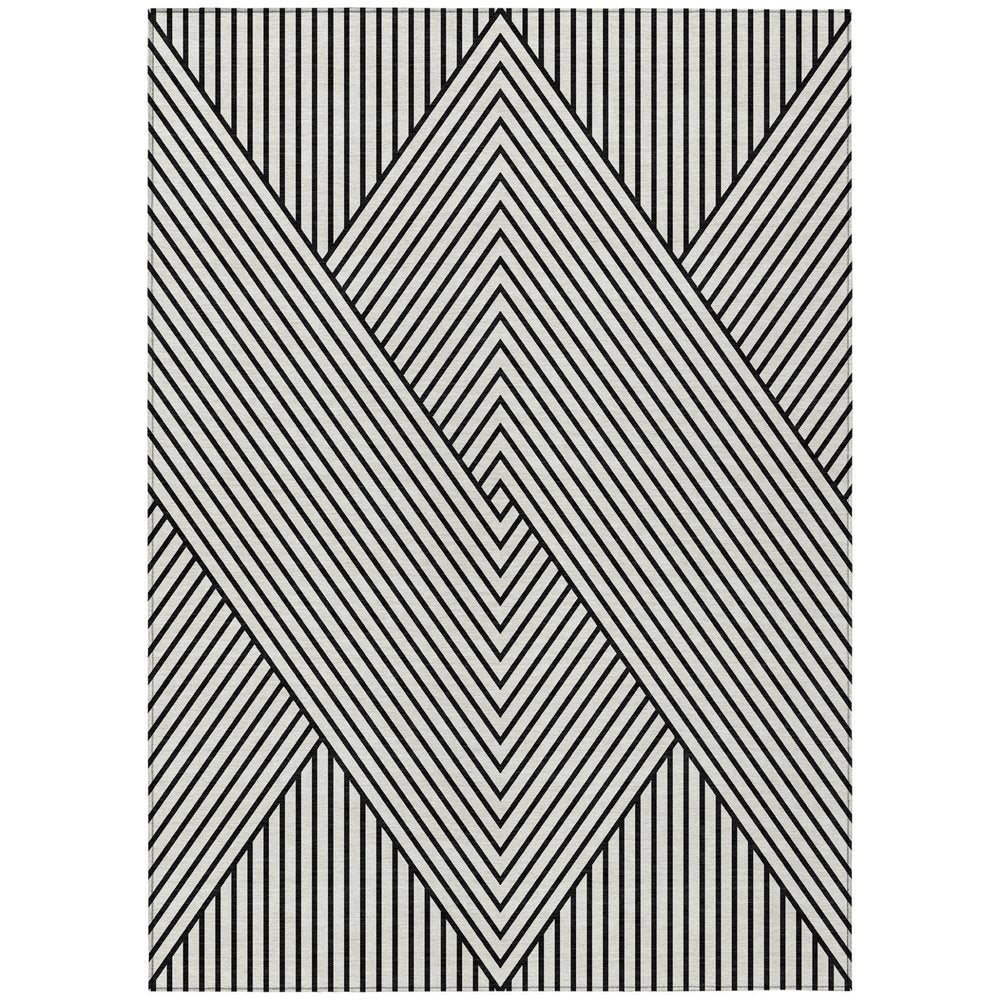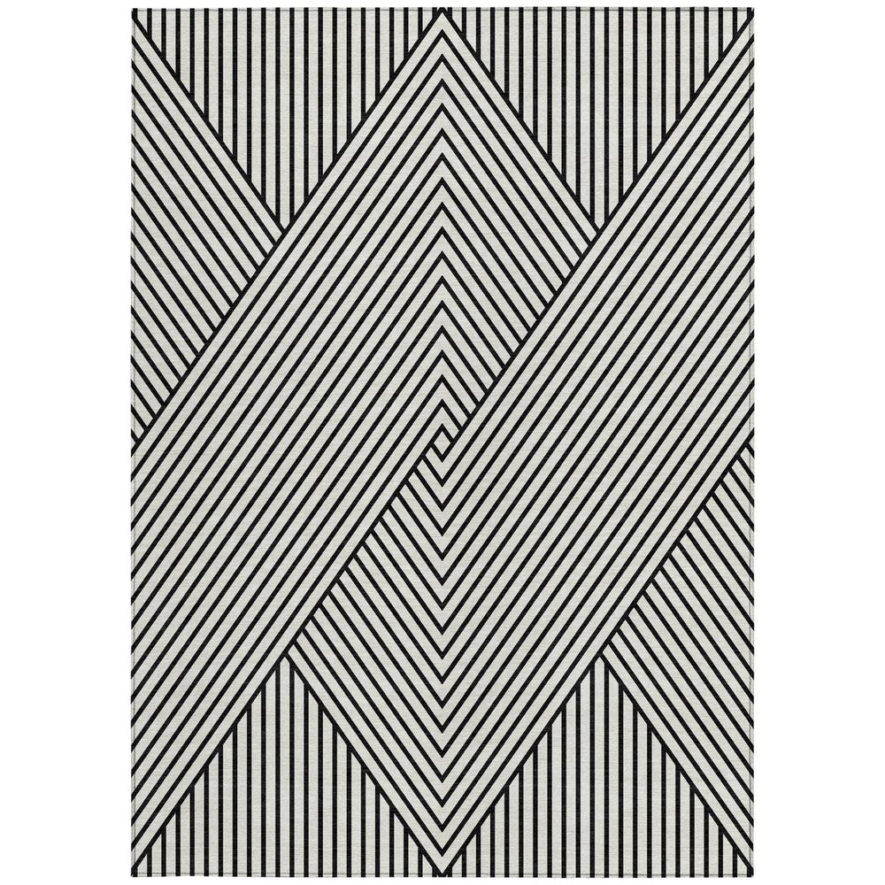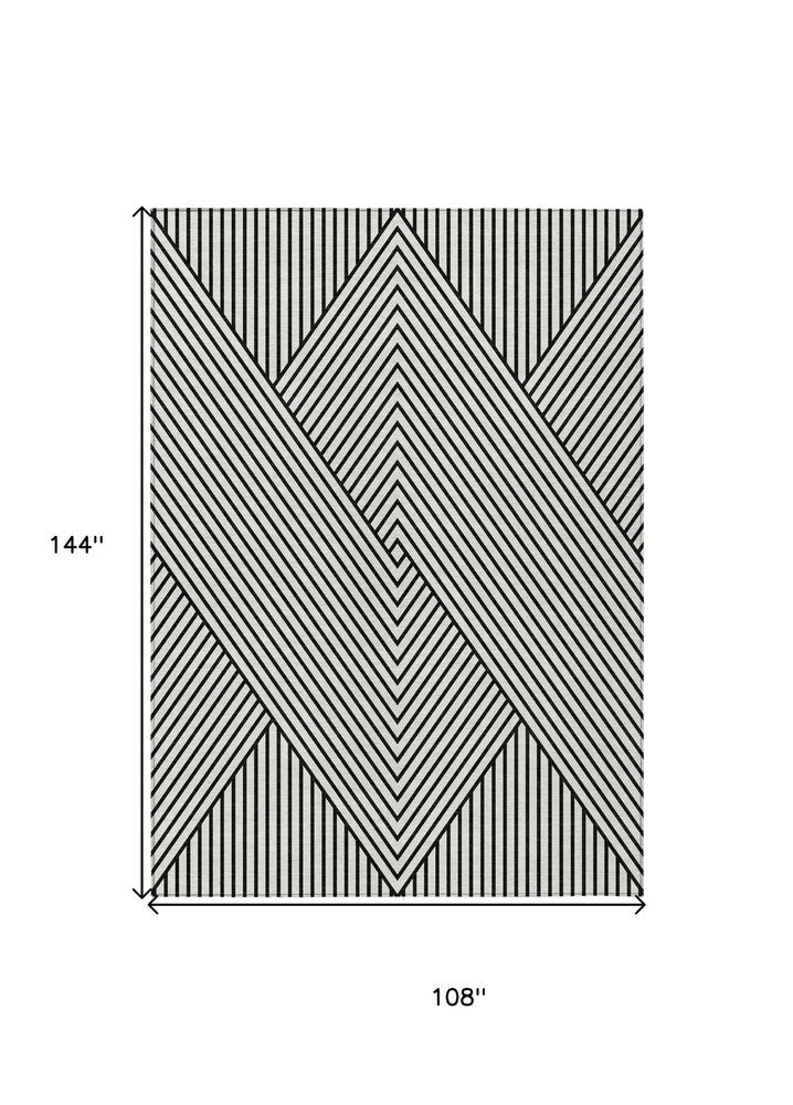 9' X 12' White And Black Geometric Washable Indoor Outdoor Area Rug