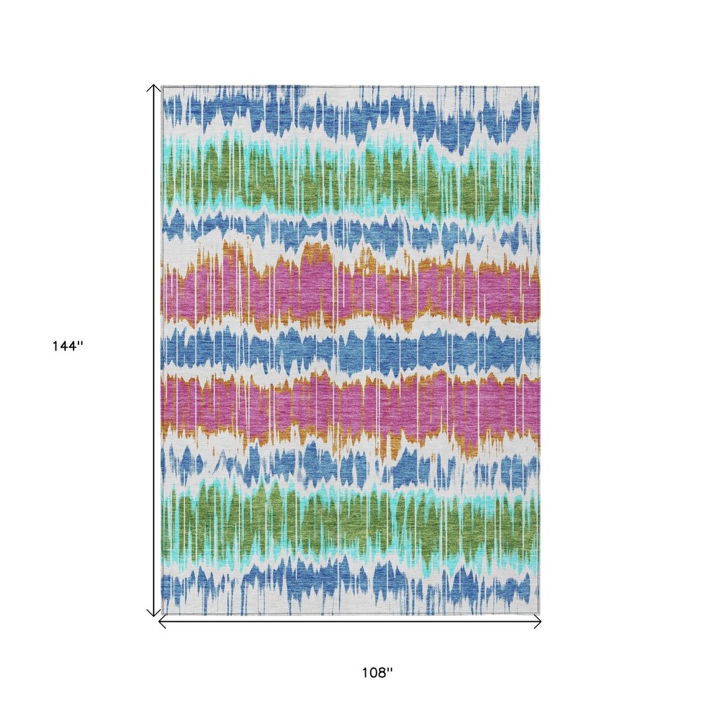 9' X 12' White Blue And Pink Striped Washable Indoor Outdoor Area Rug